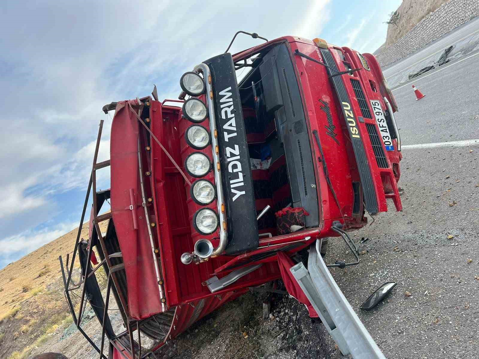 Afyonkarahisar’da seyir halindeki patates yüklü kamyon ile büyükbaş hayvan yüklü kamyonun çarpışması sonucu meydana gelen trafik kazasında 1 kişi hayatını kaybetti, 1 kişi yaralandı