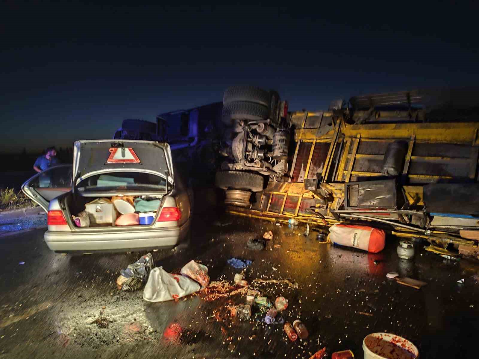 Devrilen tırın dorsesine çarpan otomobilde 1 kişi öldü, 3 kişi yaralandı