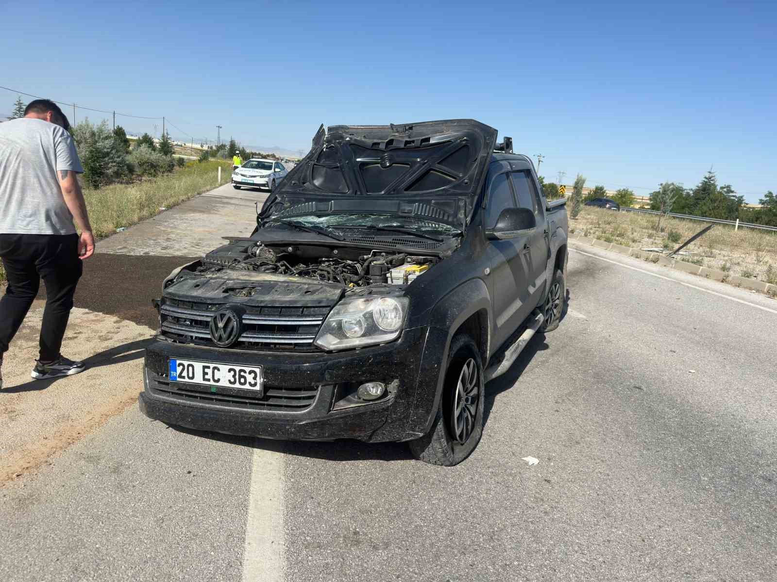 Afyonkarahisar’da taklalar atarak refüje giren arazi aracındaki 2 kişi şans eseri kazayı yara almadan atlattı.