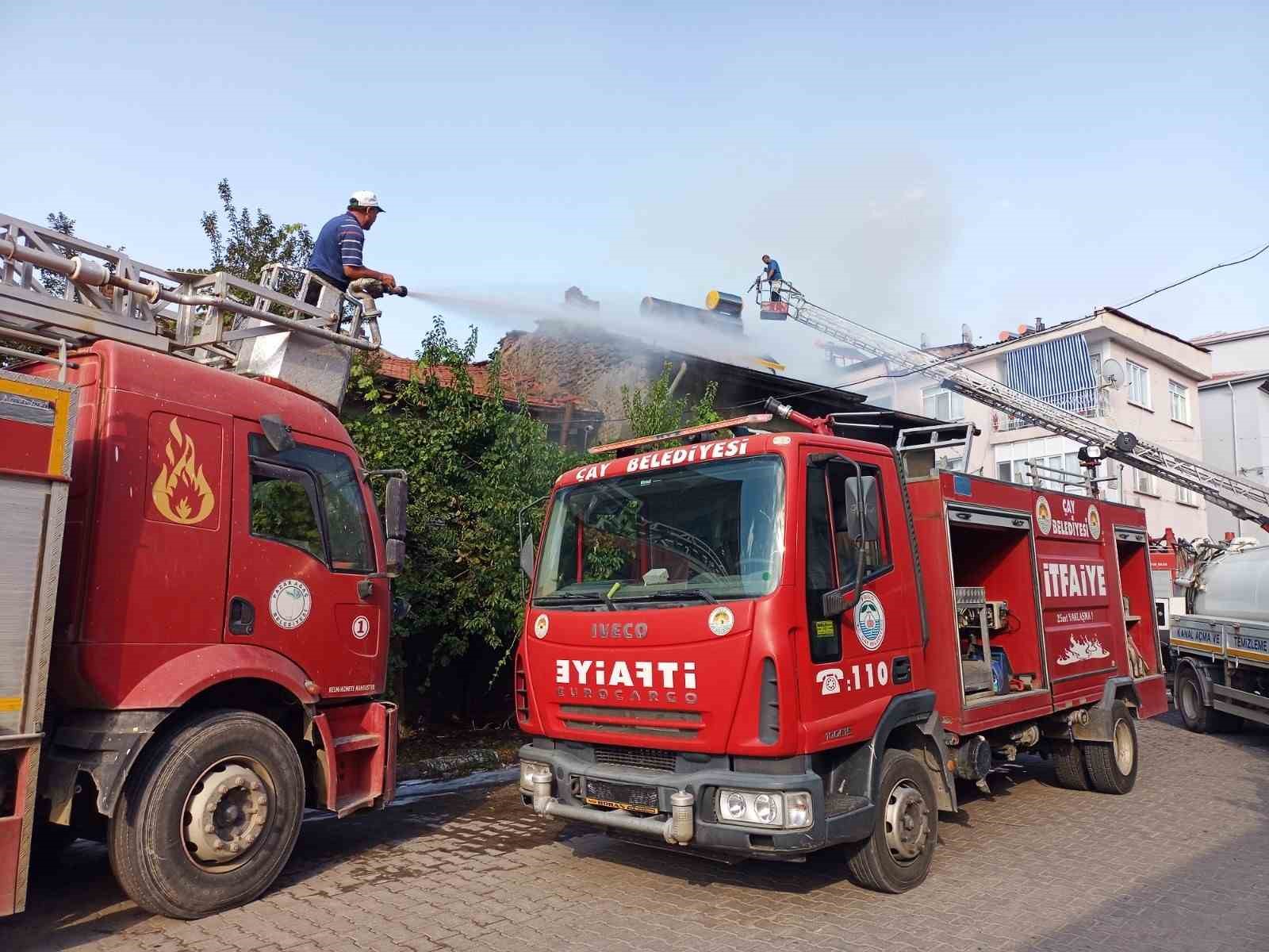Edinilen bilgilere göre, ilçenin Aktaş Mahallesi Bilaloğlu Sokakta bulunan M.T.’ye ait olduğu öğrenilen ev bir anda yanmaya başladı. Vatandaşların ihbarı üzerine yangın çıkan eve çok sayıda itfaiye ekibi ve emniyet güçleri sevk edildi. Çay Orman İşletme Şefliğine ait yangın arazözü ve Pazarağaç Belediyesine ait itfaiyesi, Çay Belediyesi ekibiyle birlikte yangına müdahale etti. Ekiplerin yoğun uğraşları sonucunda yangın söndürüldü. Çıkan yangında ahşap bina kullanılamaz hale geldi. Yangının diğer evlere sıçramasını engellemek amacıyla Çay Belediyesi ekipleri tarafından ev yıkıldı. Yangının nasıl çıktığı ekipler tarafından araştırıldığı bildirildi.