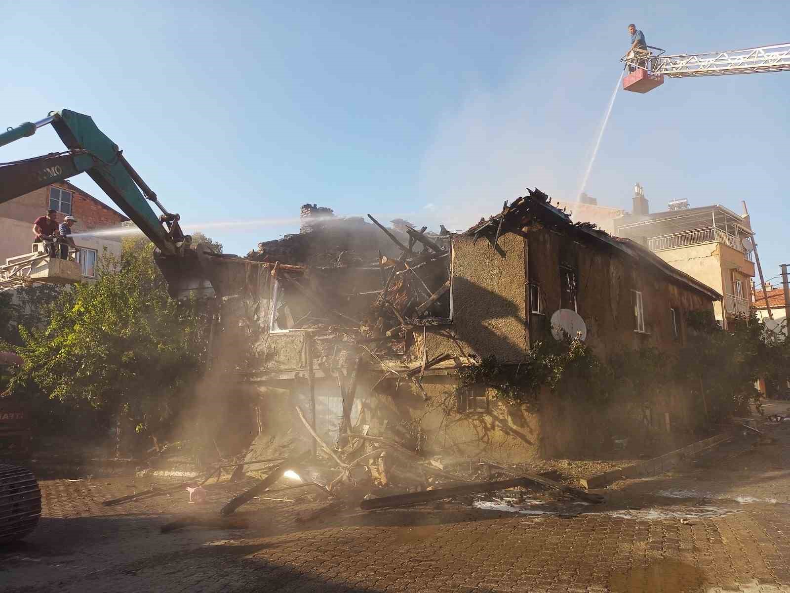 Afyonkarahisar’ın Çay ilçesindeki bir ev, çıkan yangında kullanılmaz hale gelirken ekipler tarafından yıkıldı.