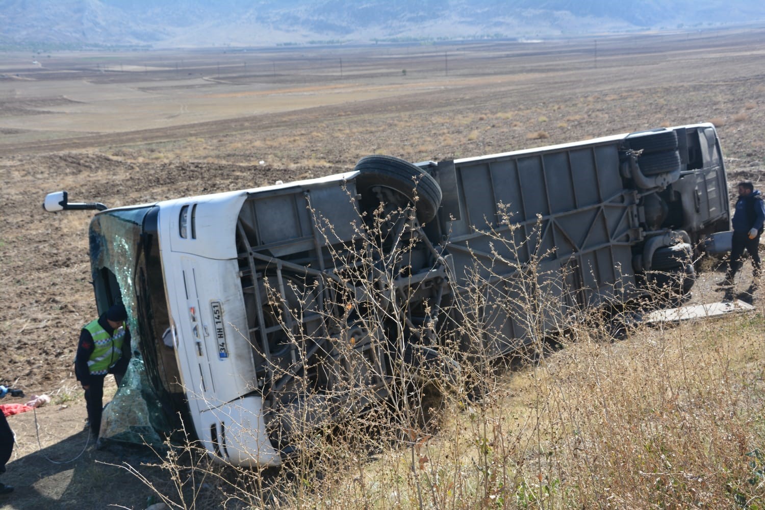 Kaza, dün sabah 10.30 sıralarında Afyonkarahisar’da Dinar – Çay yolunda meydana geldi. Edinilen bilgilere göre, A.Ş.’nin idaresindeki 34 HH 1451 plakalı Japon turistleri taşıyan MAN marka tur otobüsü, sürücüsünün direksiyon hakimiyetini kaybetmesi sonucu yolun sağ tarafına devrildi. Kazada 1’i ağır 22 kişi yaralandı. İhbar üzerine bölgeye sağlık ve trafik ekipleri sevk edildi. Yaralılar ilk müdahalelerinin ardından ambulanslarla Afyonkarahisar Devlet Hastanesi başta olmak üzere çevre hastanelere kaldırıldı.