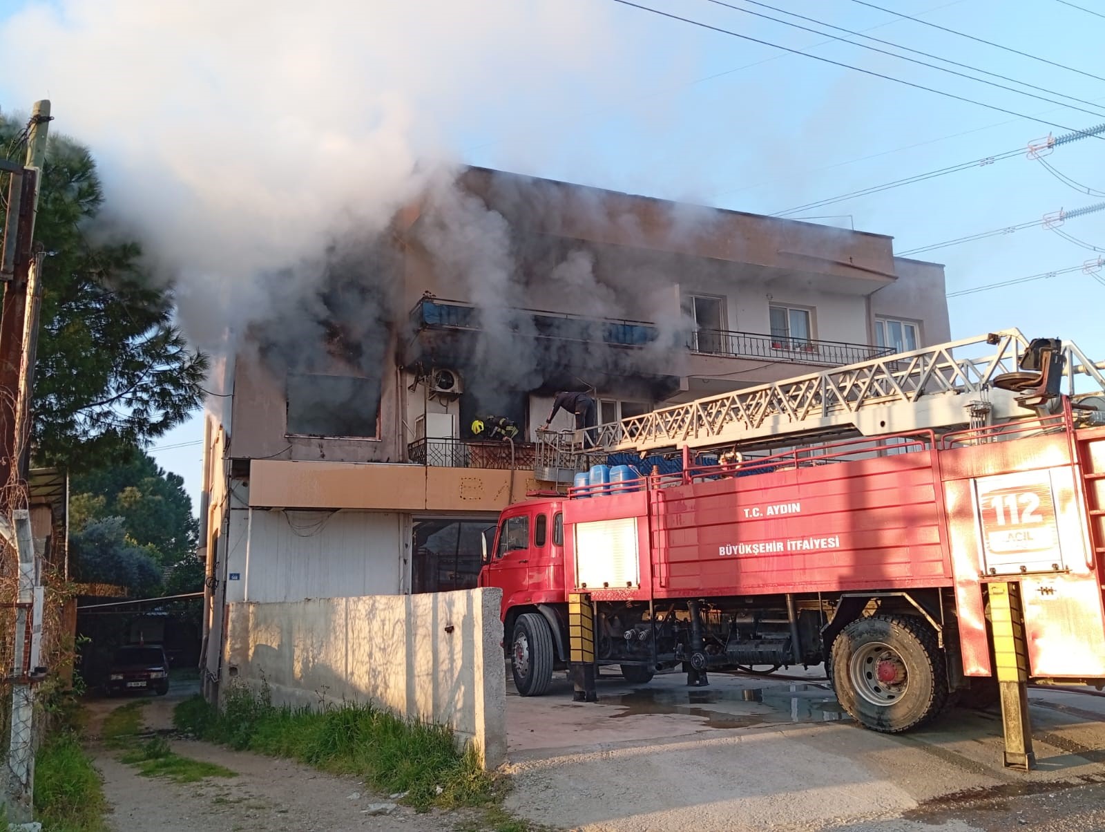 Edinilen bilgiye göre, ilçedeki iki katlı apartmanın birinci katında yaşayan S.İ.’nin (80) evinde henüz bilinmeyen bir nedenle yangın çıktı. Alevleri ve dumanları fark eden çevredekilerin ihbarı üzerine olay yerine itfaiye, sağlık ve polis ekipleri sevk edildi. Kısa sürede olay yerine gelen Aydın Büyükşehir Belediyesi İtfaiye Daire Başkanlığı ekipleri yangına müdahale ederek söndürdü. Yangında dumandan etkilenen ev sahibi yaşlı adam ve bakıcısı ambulansla hastaneye kaldırıldı. Yangının çıktığı ev tamamen yanarak kullanılamaz hale geldi, üst katta bulunan daire de zarar gördü.