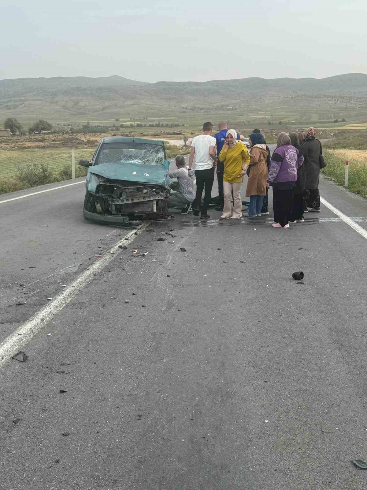 Kafa kafaya çarpışan otomobillerin sürücüleri yaralandı