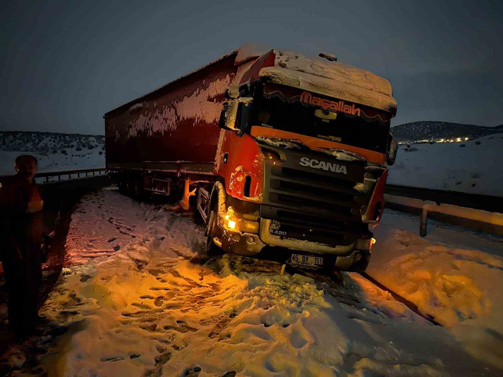 Afyonkarahisar’da dün gece itibari ile etkili olan kar yağışı özellikle trafikte olumsuzluklara neden olurken, Afyonkarahisar-Ankara karayolunda kayan tırlardan dolayı trafikte aksamalar meydana geldi.