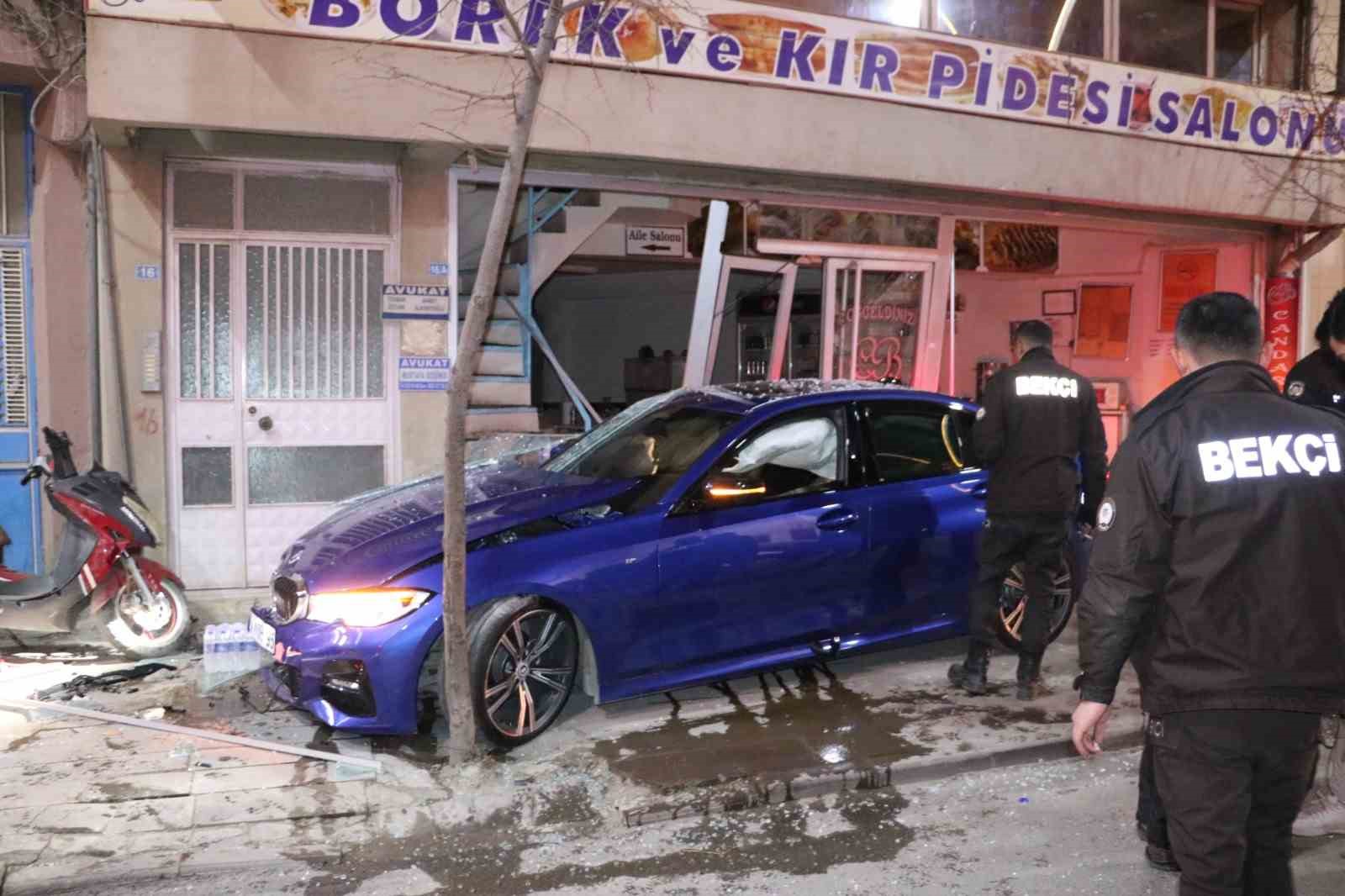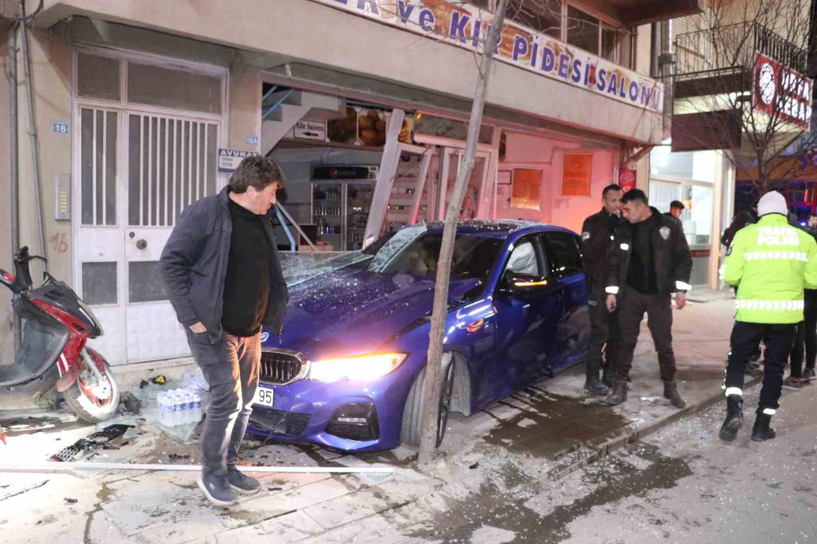 Afyonkarahisar’da kontrolden çıkan lüks otomobil börekçi dükkanına daldı. Kaza esnasında dükkanın boş olması, yaşanabilecek bir facianın önüne geçti.