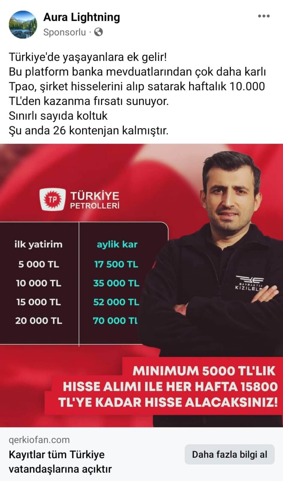 Dolandırıldığını vergi ödemeniz gerekiyor denilerek ekstra para istendiğinde anladığını belirten Adnan Tıkır, Gazete3.com.tr’den Duygu Çınar Dalgıç’a açıklamalarda bulundu. Dolandırıcıların tuzağına düşen engelli birey babası Adnan Tıkır, yaşananları şöyle anlattı: “Sosyal medya paylaşım platformunda dolaştığım esnada Türkiye petrollerinin yatırım yapabilmemiz için hisse senedi sattığını bu işlemin devlet destekli olduğu şeklinde bir reklam gördüm. Reklama tıkladım. Karşıma başvuru sayfası açıldı, bu sayfaya cep telefonu numaram ve adımı soyadımı yazdım ve başvur butonuna tıkladım. Daha sonra beni Whatsap üzerinden sesli olarak aradı, arayan kişi yaptığım yatırım başvurusunun olumlu olduğunu, döviz alım satımı yaparak para kazanacağını söyledi. Bu şahıs benden Skype, Binance TR ve Ticaret isimli uygulamaları indirmemi istedi bende bu uygulamaları cep telefonuma indirdim. Skype üzerinden kendisinin ekonomi uzmanı olduğunu söyleyen kişi ile de görüştüm. Bu şahıslar benden Skype üzerinden cep telefonuma ekran paylaşımı yapmamı istediler, bende şahısların bana tarif etmiş oldukları gibi cep telefonumun ekran paylaşımını yaptım. Şahıslar yatırım yapabilmem için para göndermem gerektiğini söylediler ve bana parayı gönderebilmem için iban numarası verdiler. Bende şahısların vermiş olduğu iban numaralarına farklı tarihlerde farklı miktarlarda paraları gönderdim. Bu şahıslar benden kendi Binance tr hesabıma da para göndermemi istediler ben para gönderdikçe Ticaret isimli uygulamada kazançlarımı görüyordum. Bu şahıslar bana; benim banka hesaplarıma yardım adı altında paralar geleceğini bu paraları onların bildireceği yere göndermemi istediler. Daha sonra benim Ziraat Bankası hesabıma tanıdığım şahıslardan paralar geldi. Bende bu paraları kendi Binance hesabıma gönderiyorum diye onların verdiği başka hesaplara aktarmışım. Bana mobil bankacılıktan 730 bin lira kredi ve avans para çektirdiler. Nakit paralarla falan toplam yaklaşık 850 bin lira kadar paramız gitti. Şimdi hesabımda para falan yok. Çekilen kredilerin ve avans paraların ödemesi geldi. Ne yapacağımızı şaşırdık.” Karakola zar zor şartlarda giderek şikayetçi olduğunu aktaran mağdur Tıkır, “sosyal medya reklamında Cumhurbaşkanımız, Eşi ve Bayraktar ailesinin fotoğraf ve söylemleri vardı. Onlar olunca güvendim. Ama yanılmışım. Vatandaşları uyarıyorum; yüksek getiri gibi kazanç reklamlarına inanmayın” dedi. >>>Mustafa BAYER
