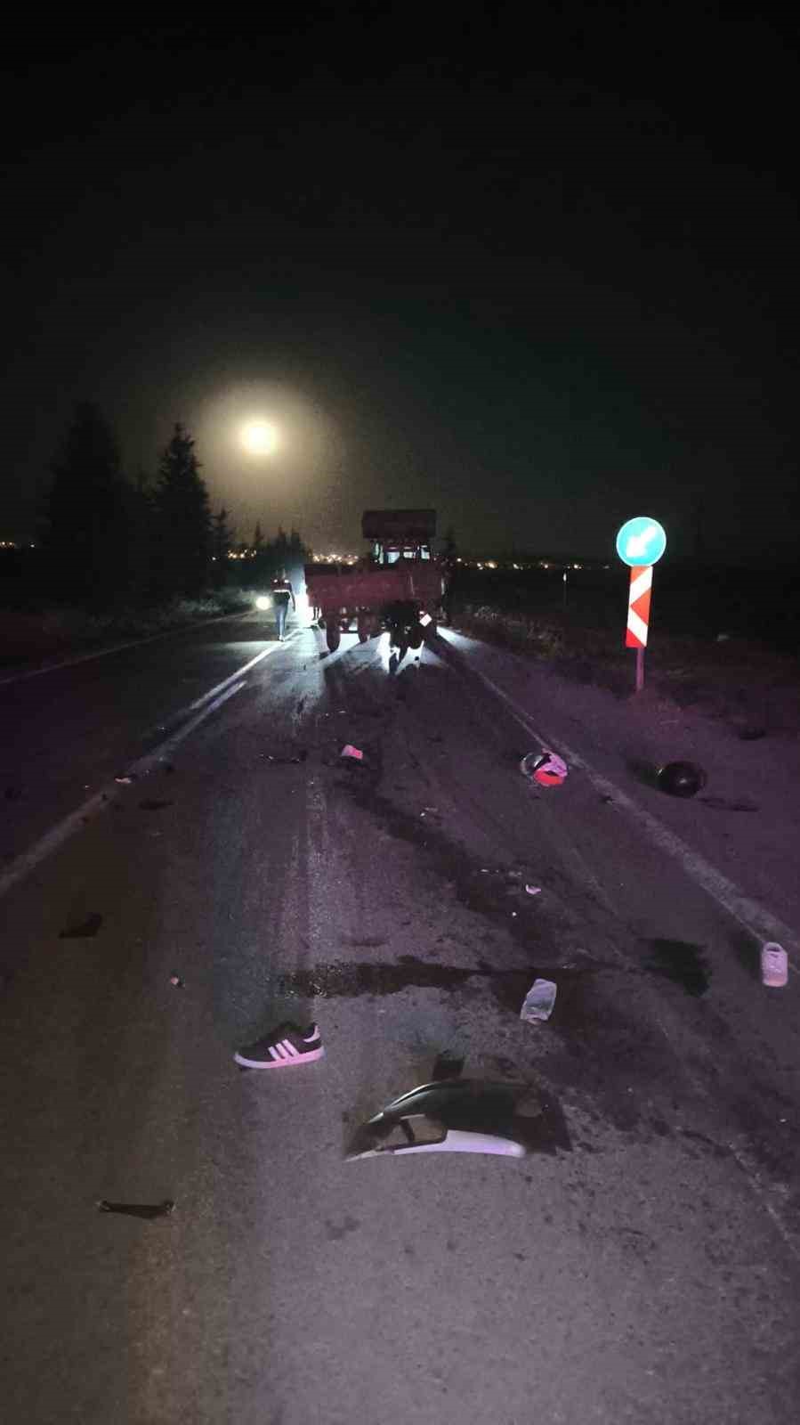 Afyonkarahisar’da motosikletin traktör römorkuna çarptığı trafik kazasında biri kadın 2 kişi hayatını kaybetti.
