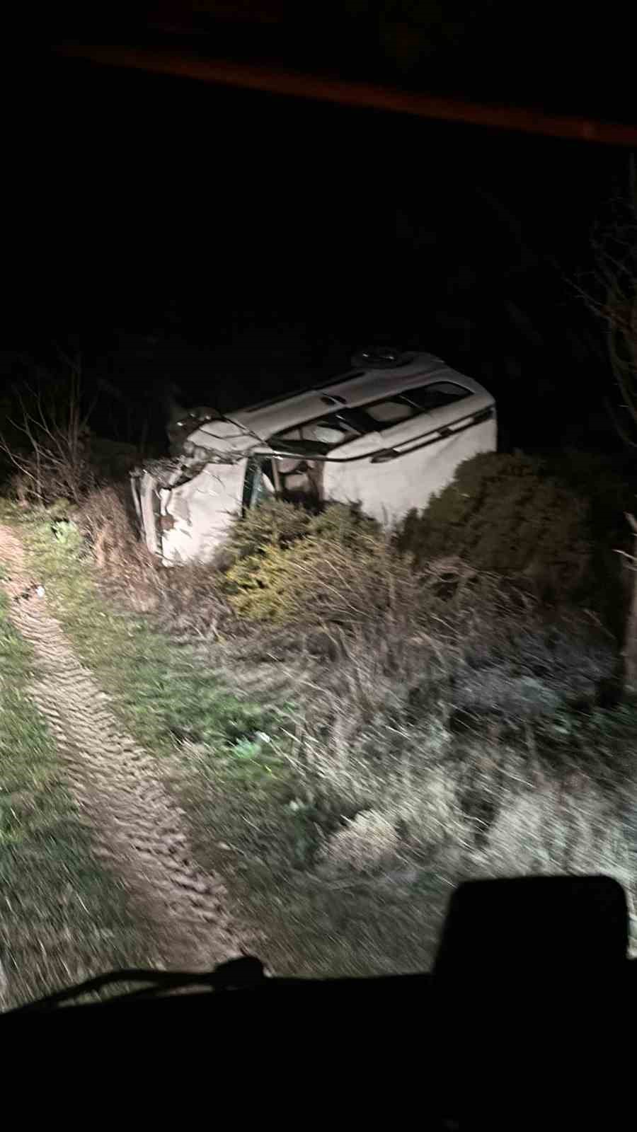 Takla atıp şarampole devrilen araçta 4 kişi yaralandı