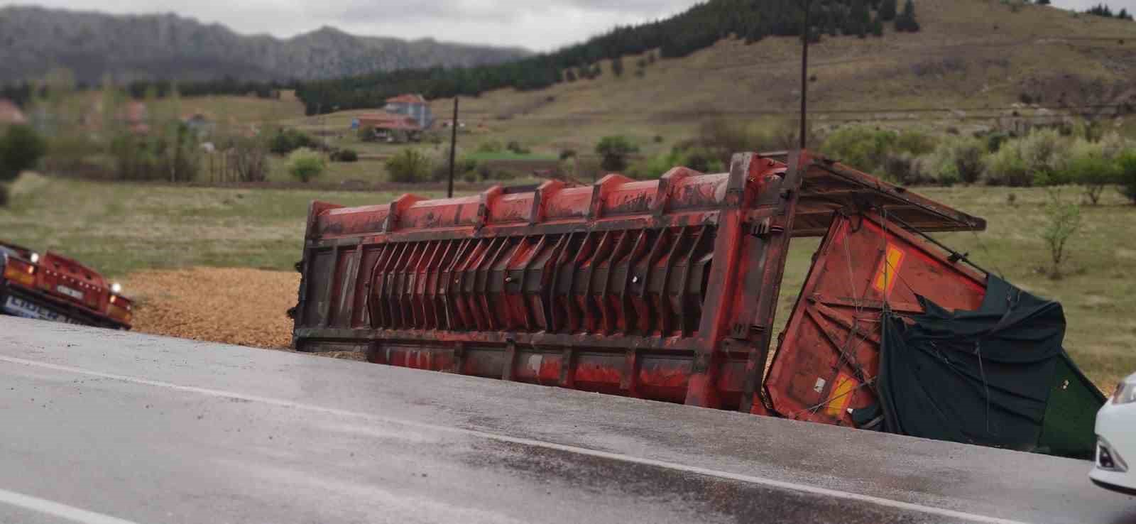 Talaş yüklü tır devrildi, sürücüsü yaralandı