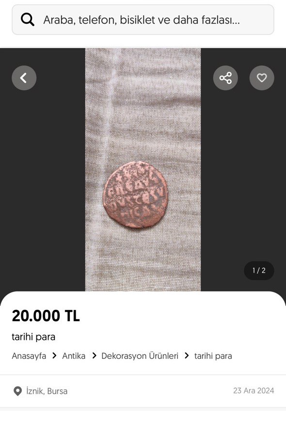 Bursa’da 4 medeniyete başkentlik yapmış dünyaca ünlü tarihi kent İznik’te internet üzerinden tarihi sikkelerin satışa sunulması herkesi şok etti. Bir alışveriş sitesinde tarihi kent İznik’ten çıkartıldığı iddia edilen 2 bin yıllık sikkelerin satışa sunulması dikkat çekti.