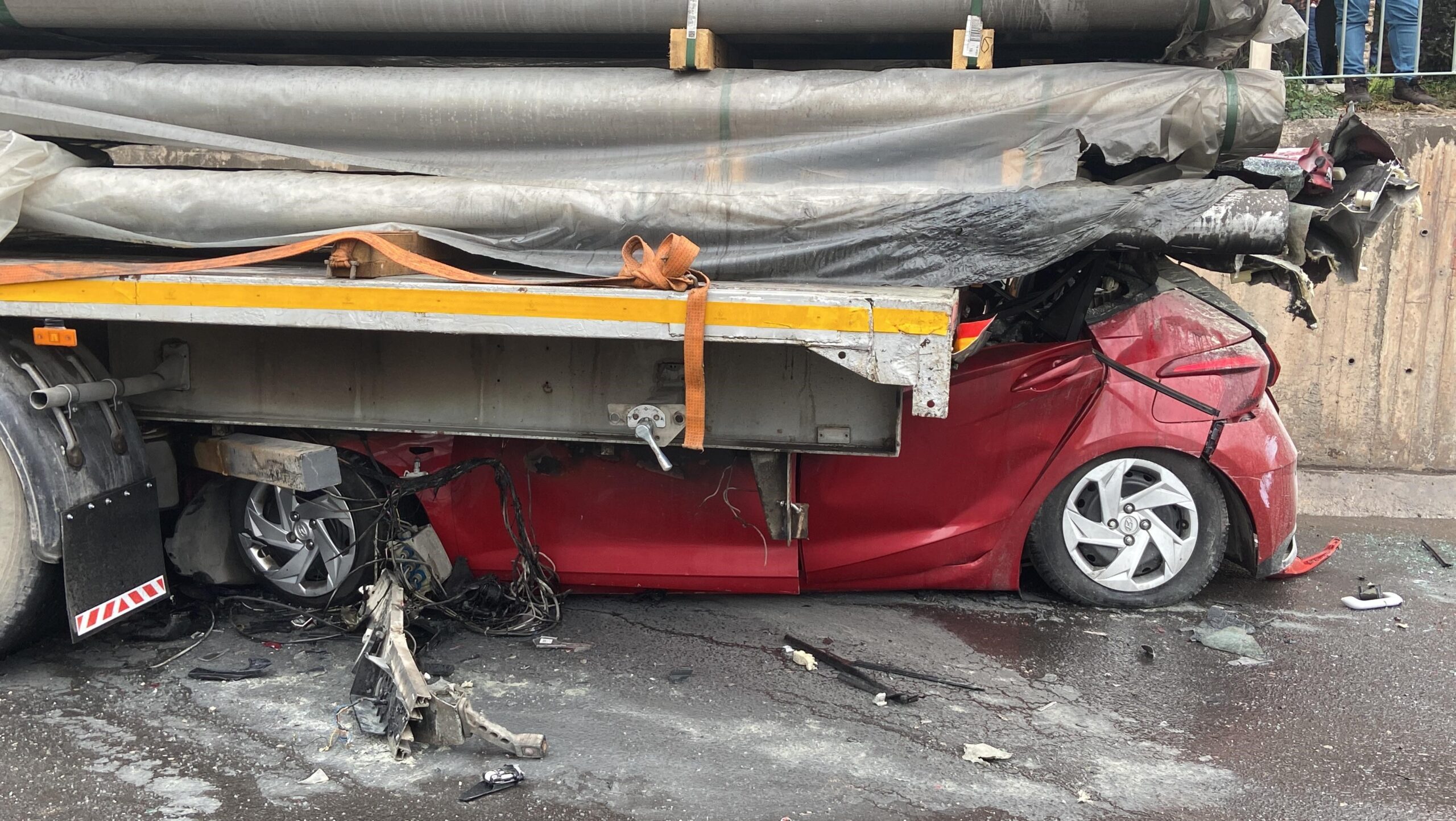 Kocaeli’nin Dilovası ilçesinde park halindeki tırın altına giren otomobilde yangın çıktı. Feci kazada sürücü hayatını kaybetti, otomobil ise hurdaya döndü.