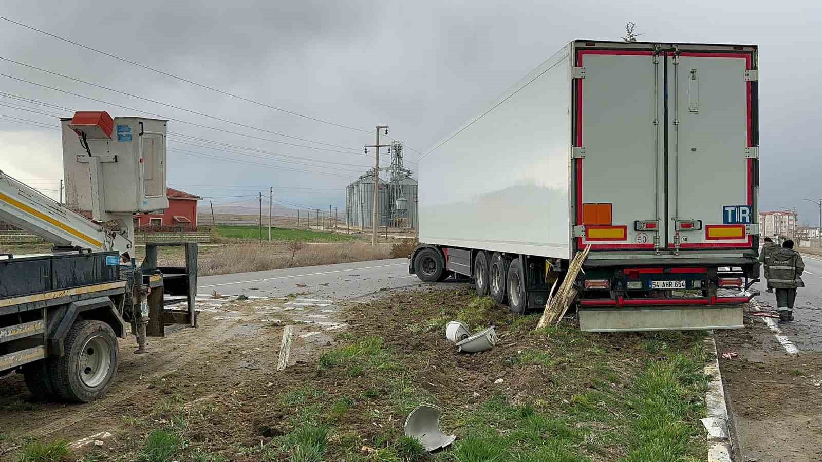 Kaza, Bolvadin ilçesi girişinde meydana geldi. Edinilen bilgilere göre, H.Y. İdaresindeki 54 plakalı tır sürücüsünün direksiyon hakimiyetini kaybetmesi sonucu kontrolden çıktı. Araç ardından yol ortasındaki refüje girip, aydınlatma direğini ve çam ağacını yıkarak durabildi. Kaza esnasında yolun boş olması yaşanabilecek bir facianın önüne geçerken, olayda şans eseri ölen ya da yaralanan ise olmadı.