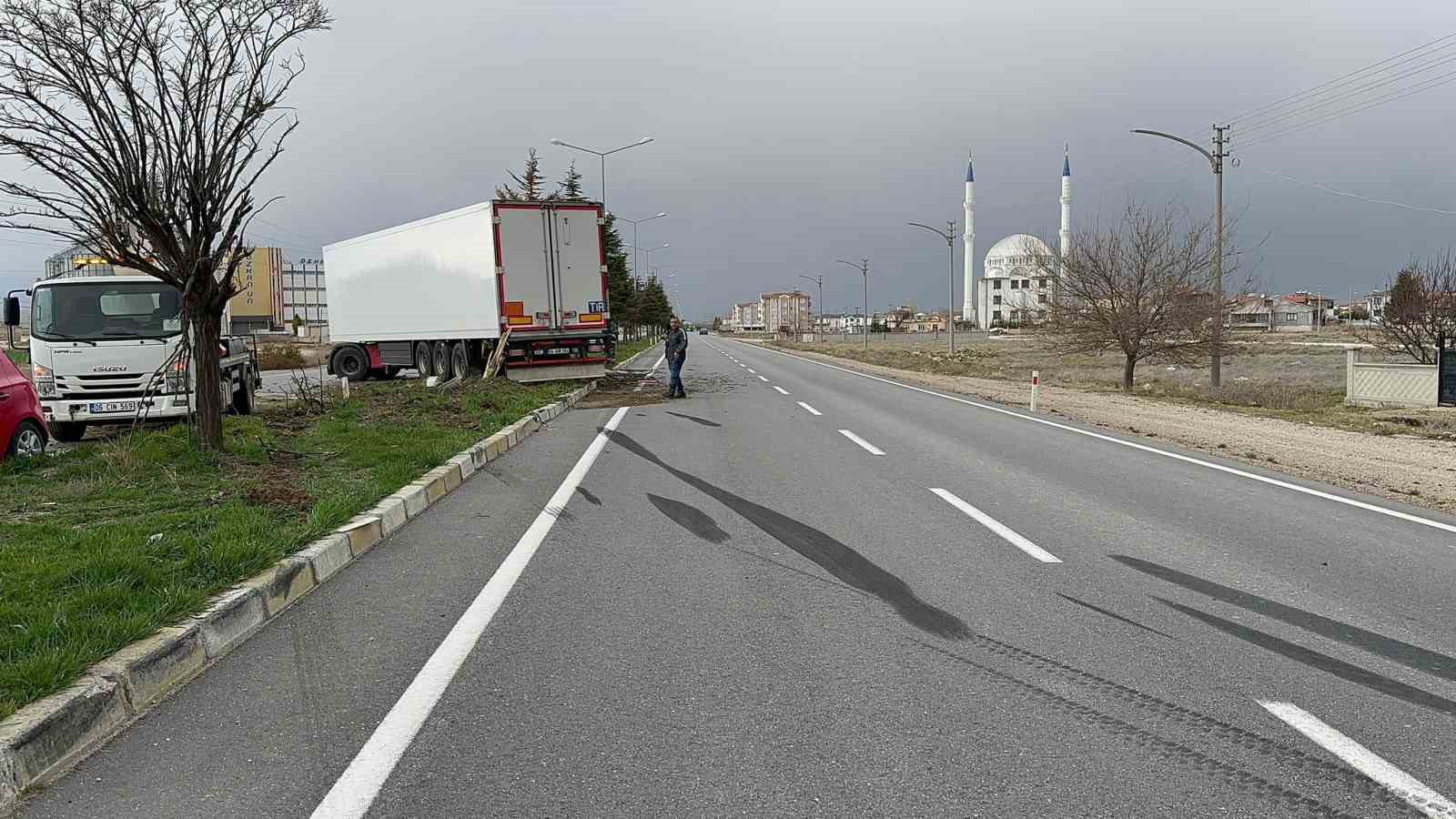 Afyonkarahisar’ın Bolvadin ilçesinde tırın kontrolden çıktığı kazada faciadan dönüldü.