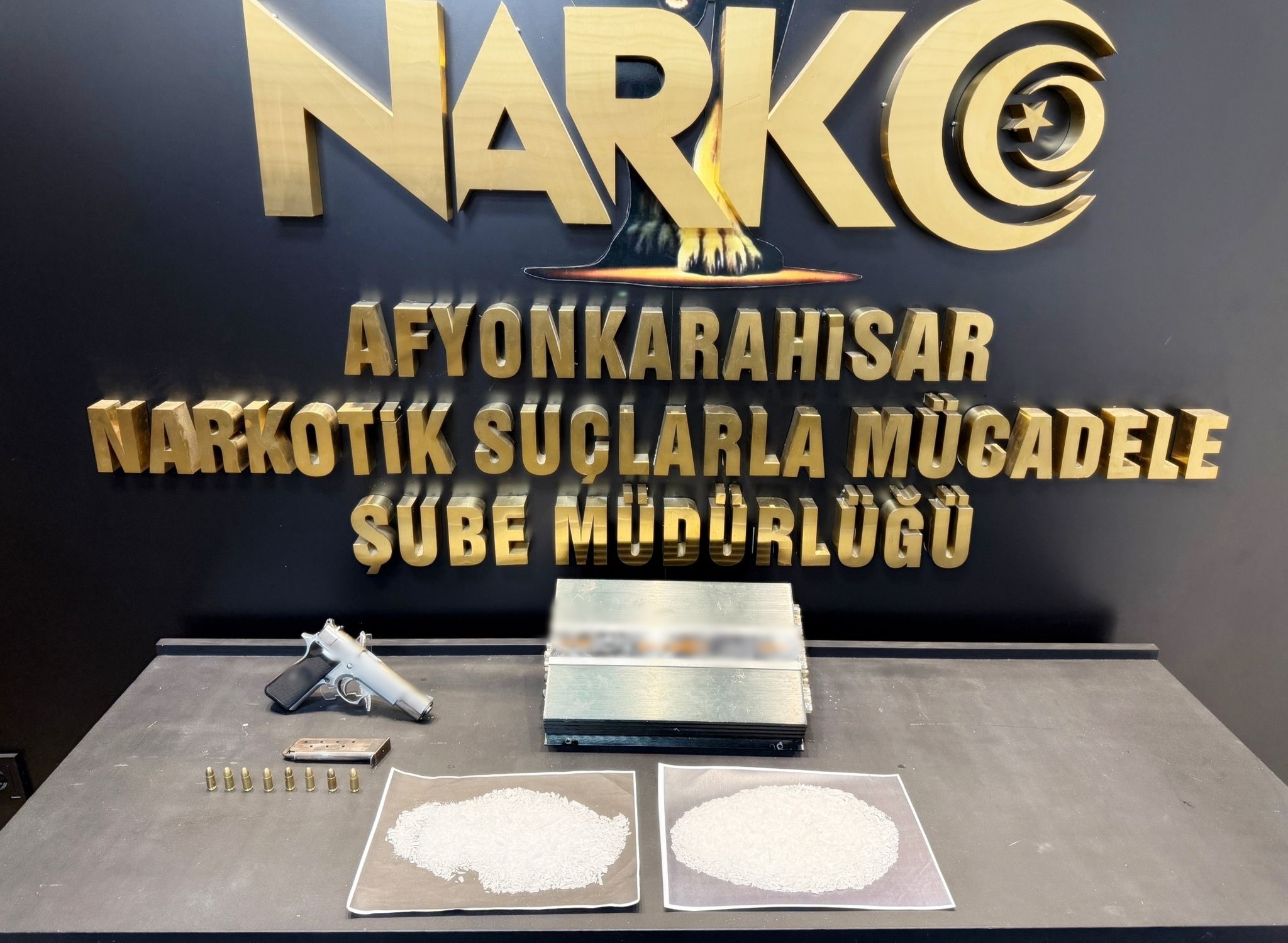 Afyonkarahisar’da seyahat ettiği yolcu otobüsünde uyuşturucu ve ruhsatsız tabanca ile yakalanan bir kişi tutuklanarak cezaevine gönderildi.