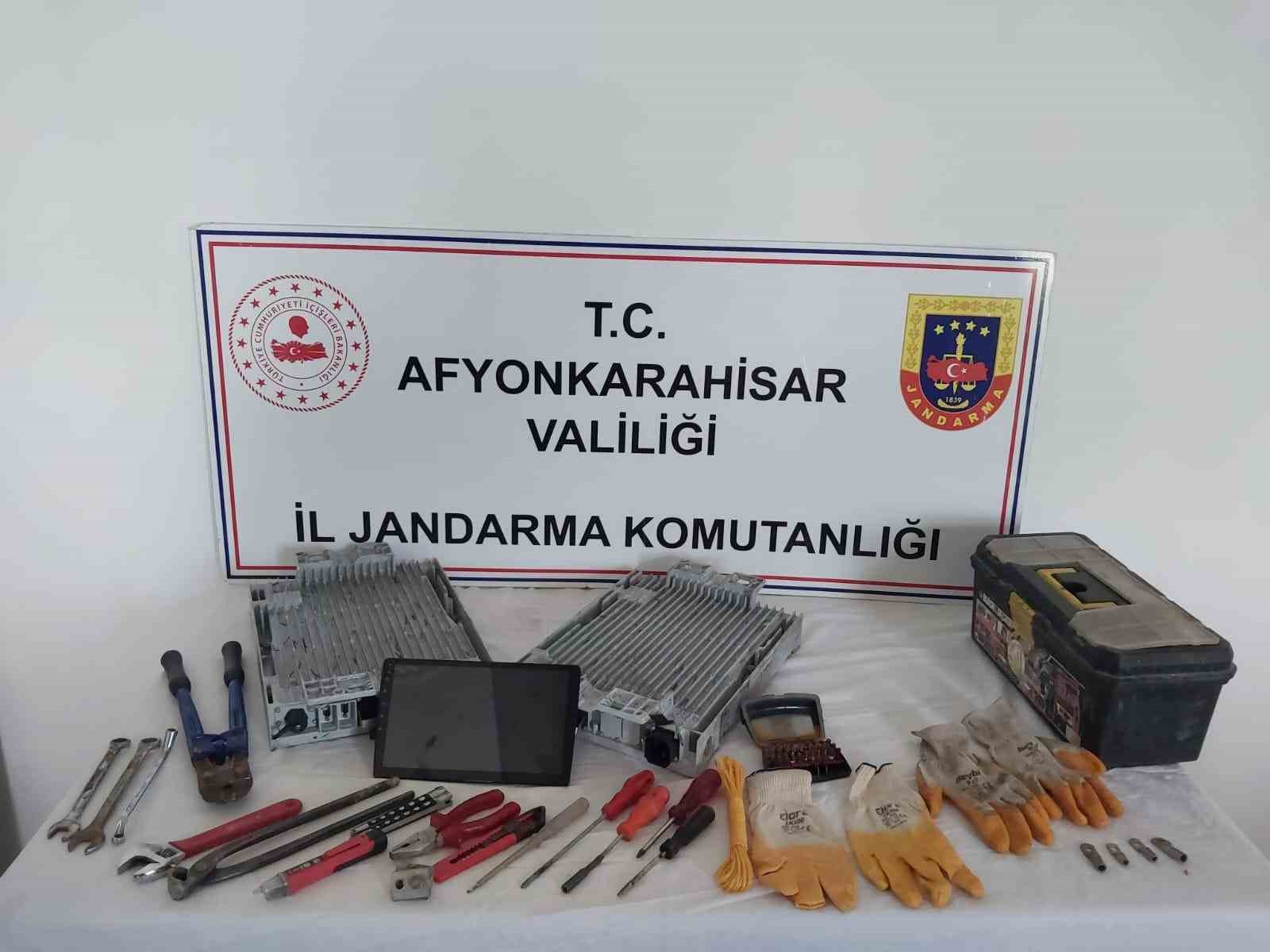 Afyonkarahisar’da tarlalardan trafo ve baz istasyonlarından kablo ile elektronik malzeme çalan bir şahıs Jandarma Suç Araştırma Timi’nin (JASAT) başarılı takibi sonrası yakalandı.