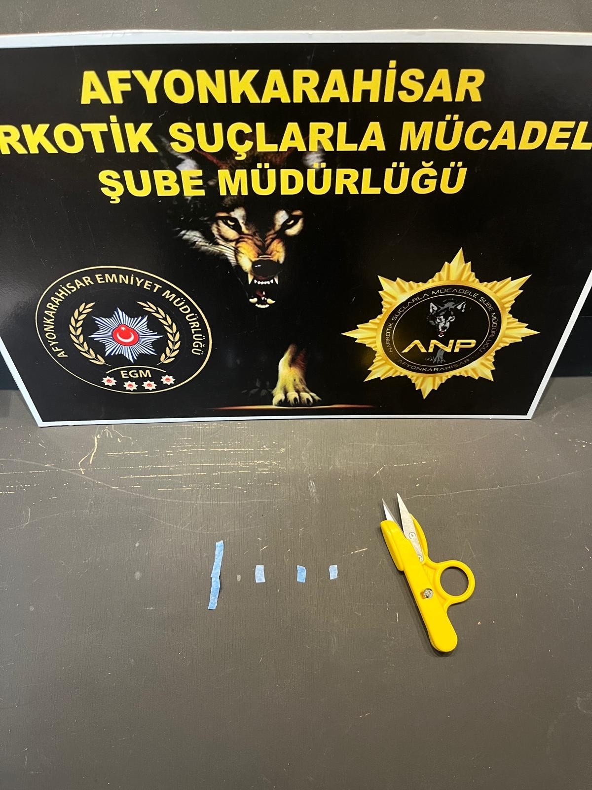 Afyonkarahisar İl Emniyet Müdürlüğüne bağlı ekipler tarafından kent merkezinde uyuşturucu operasyonu yapıldı. Operasyonda yapılan aramalarda 242 adet uyuşturucu madde, 5 adet peçeteye emdirilmiş uyuşturucu madde, 1 gram uyuşturucu madde ve 2 adet aparat ele geçirildi. Operasyonda gözaltına alınan M.E., T.K., Ü.K. ve Z.A.A. isimli şahıslar hakkında uyuşturucu madde kullanmak suçu çerçevesinde adli işlem yapılırken, Ö.T. ve Y.T. isimli şahıslar ise sevk edildikleri savcılık tarafından serbest bırakıldı. Yakalanan şahıslardan A.A., Y.T. ve R.G. isimli şahıslar ise uyuşturucu madde ticareti yapma suçlamasıyla sevk edildikleri mahkeme tarafından tutuklanarak cezaevine gönderildi.