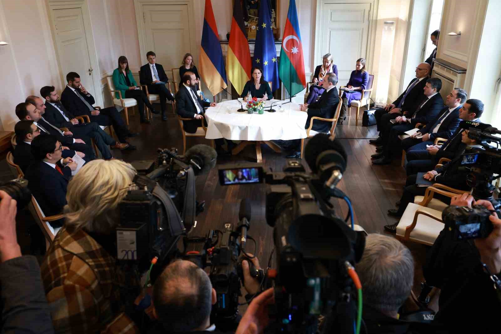 Azerbaycan Dışişleri Bakanı Ceyhun Bayramov, Almanya Dışişleri Bakanı Annalena Baerbock ve Ermenistan Dışişleri Bakanı Ararat Mirzoyan arasında Almanya’nın başkenti Berlin’de üçlü görüşme başladı.
