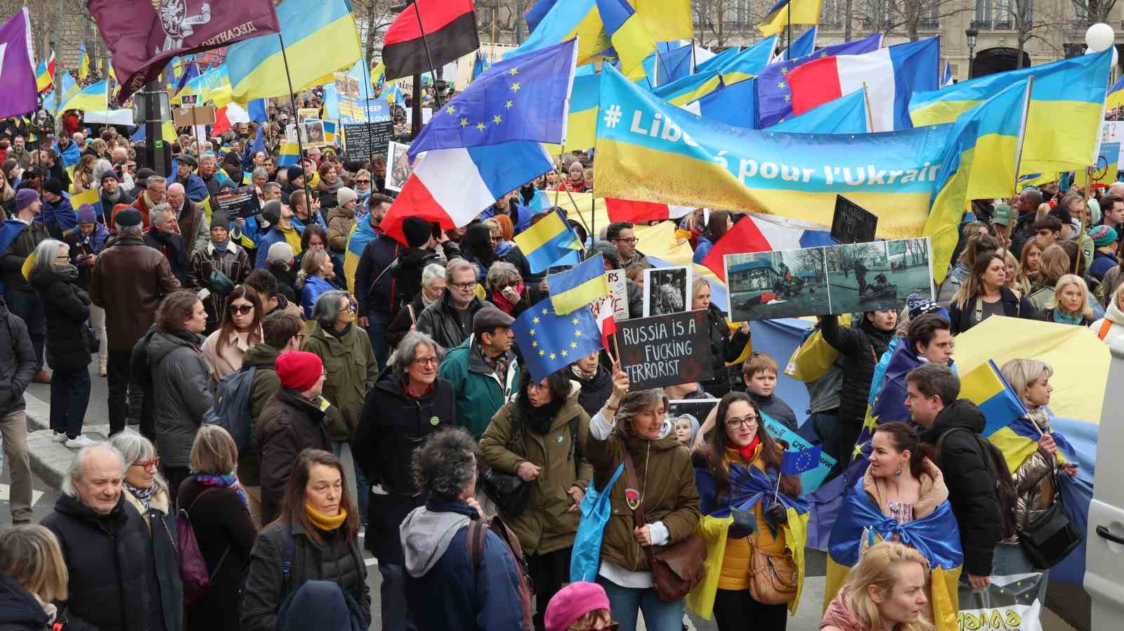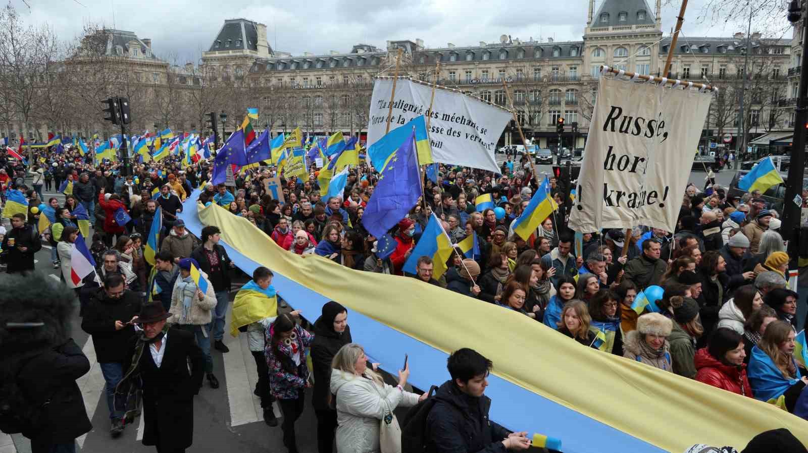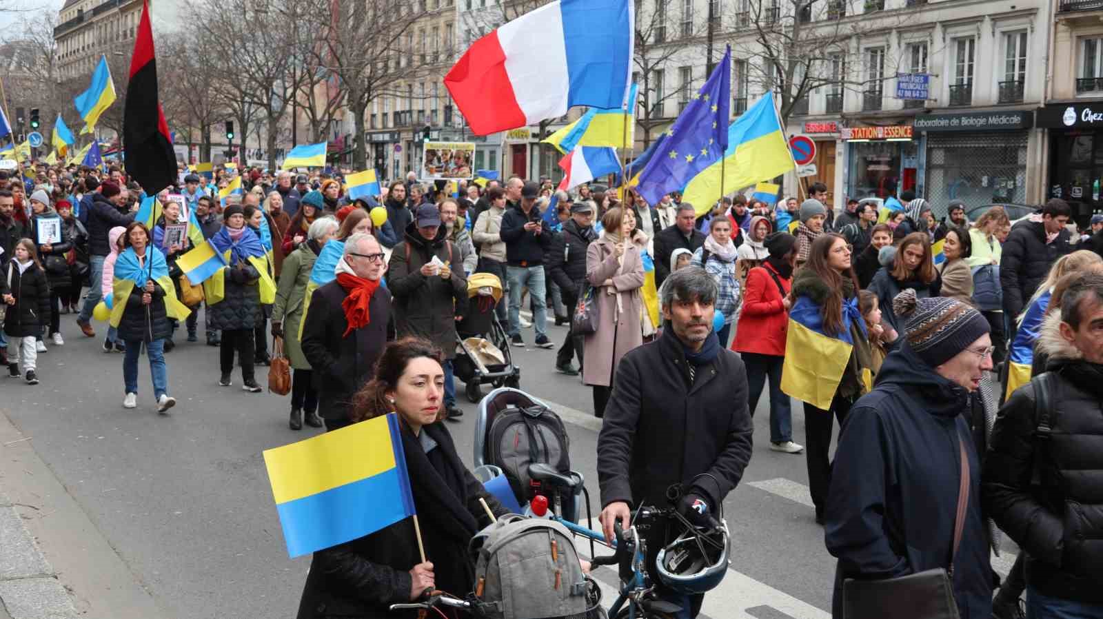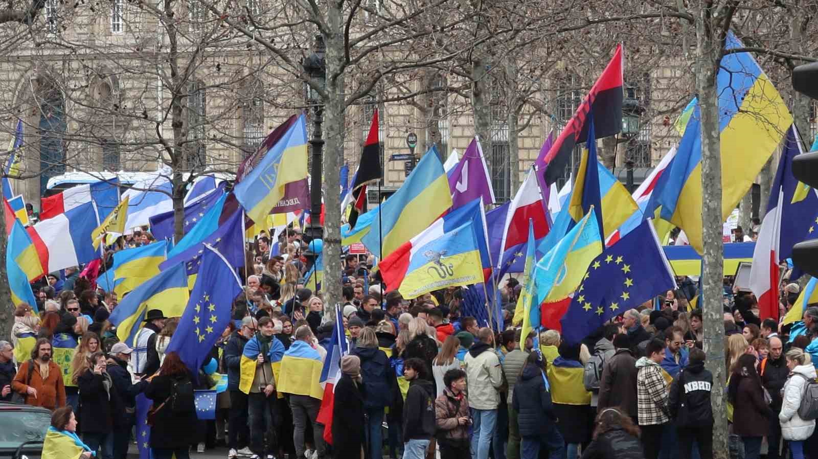 Rusya’nın Ukrayna’yı işgalinin 2. yıldönümünde Fransa’nın başkenti Paris’te Ukrayna’ya destek gösterisi düzenlendi.