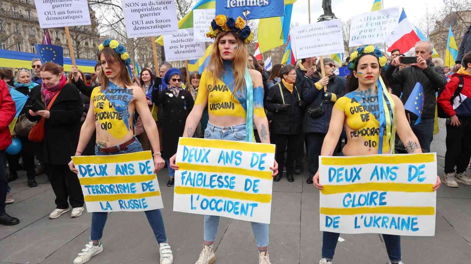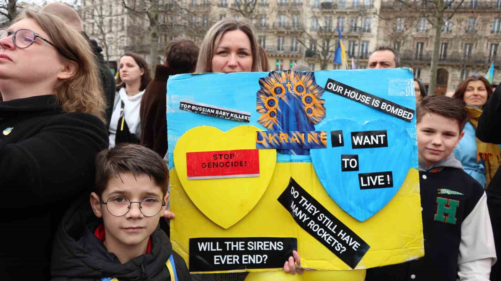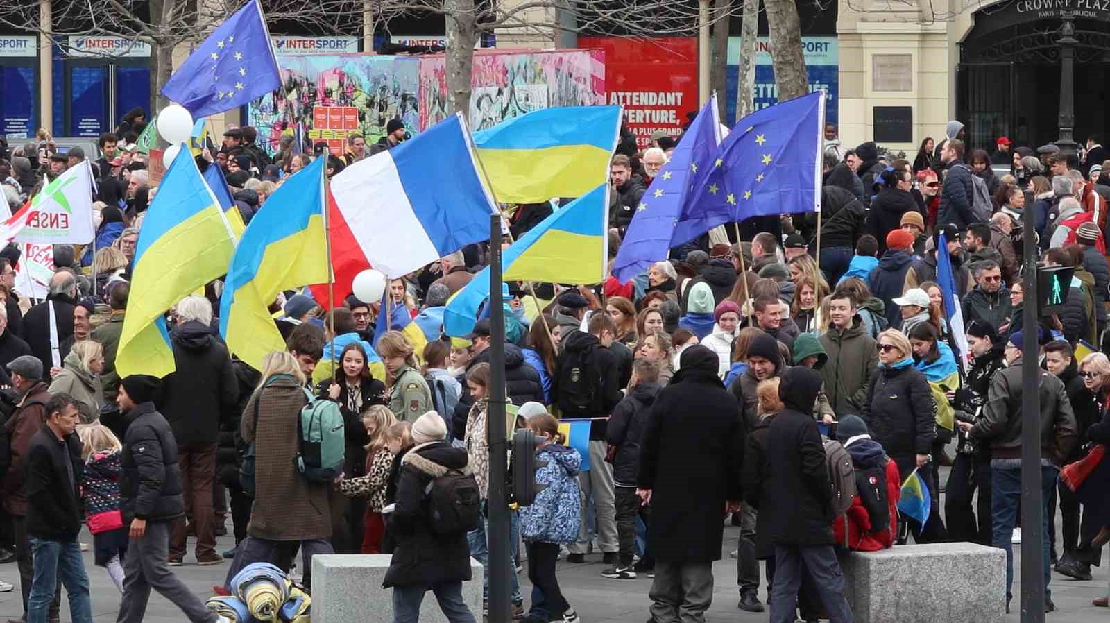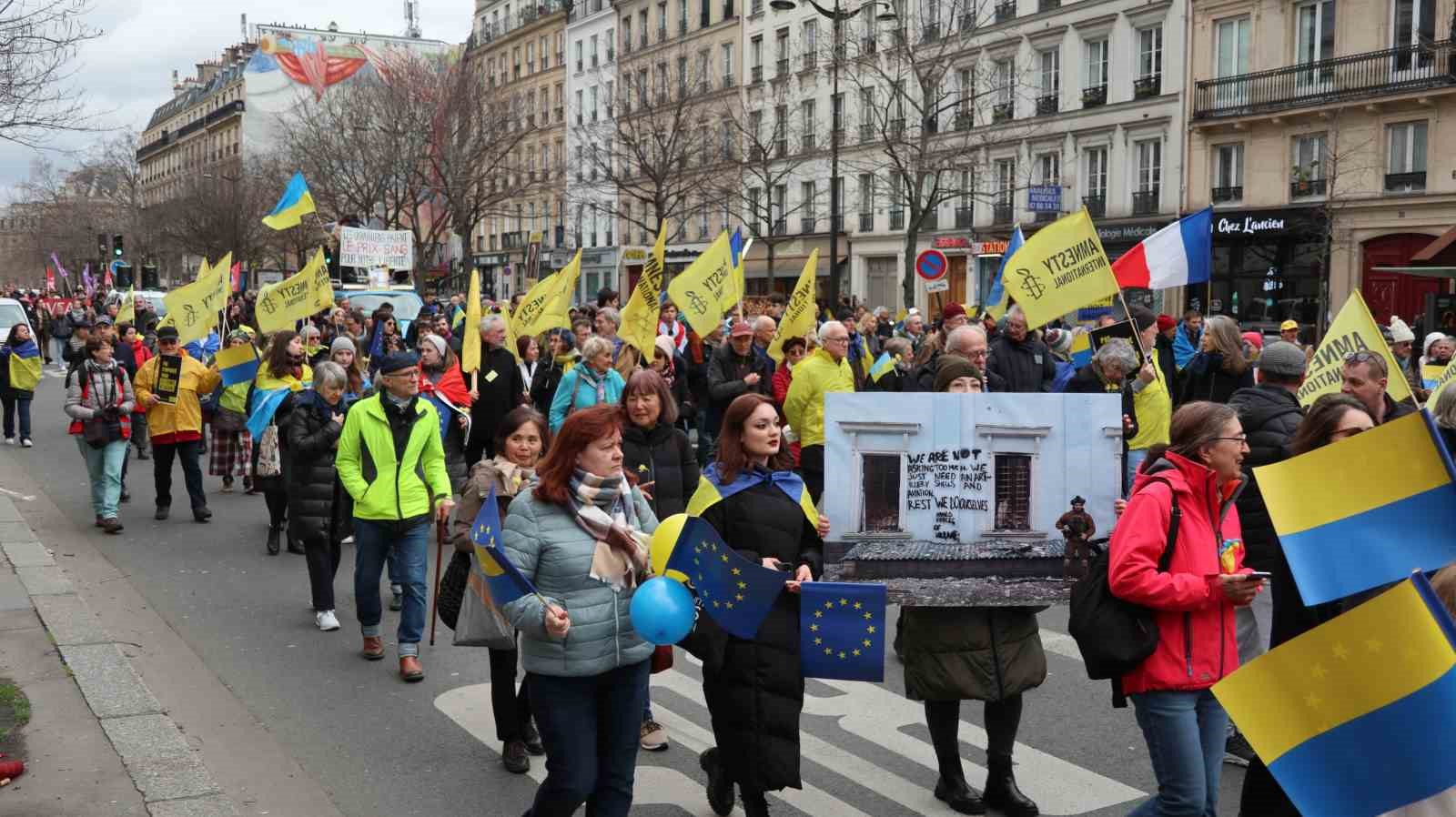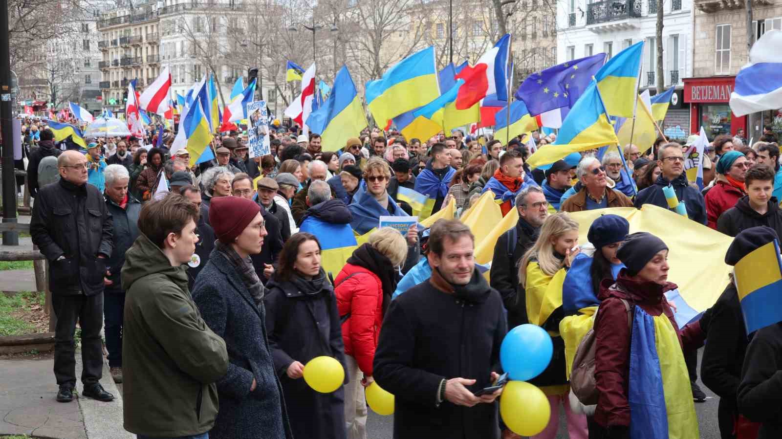 Rusya’nın Ukrayna’yı işgalinin 2. yıldönümünde Fransa’nın başkenti Paris’te Ukrayna’ya destek gösterisi düzenlendi.