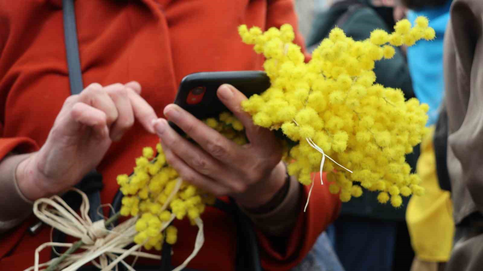Rusya tarafından savaşta yaralanmış çocukların fotoğraflarının yer aldığı pankartların taşındığı gösteride, Ukraynalı kadınların saçlarına çiçeklerden taç takmaları dikkat çekti.