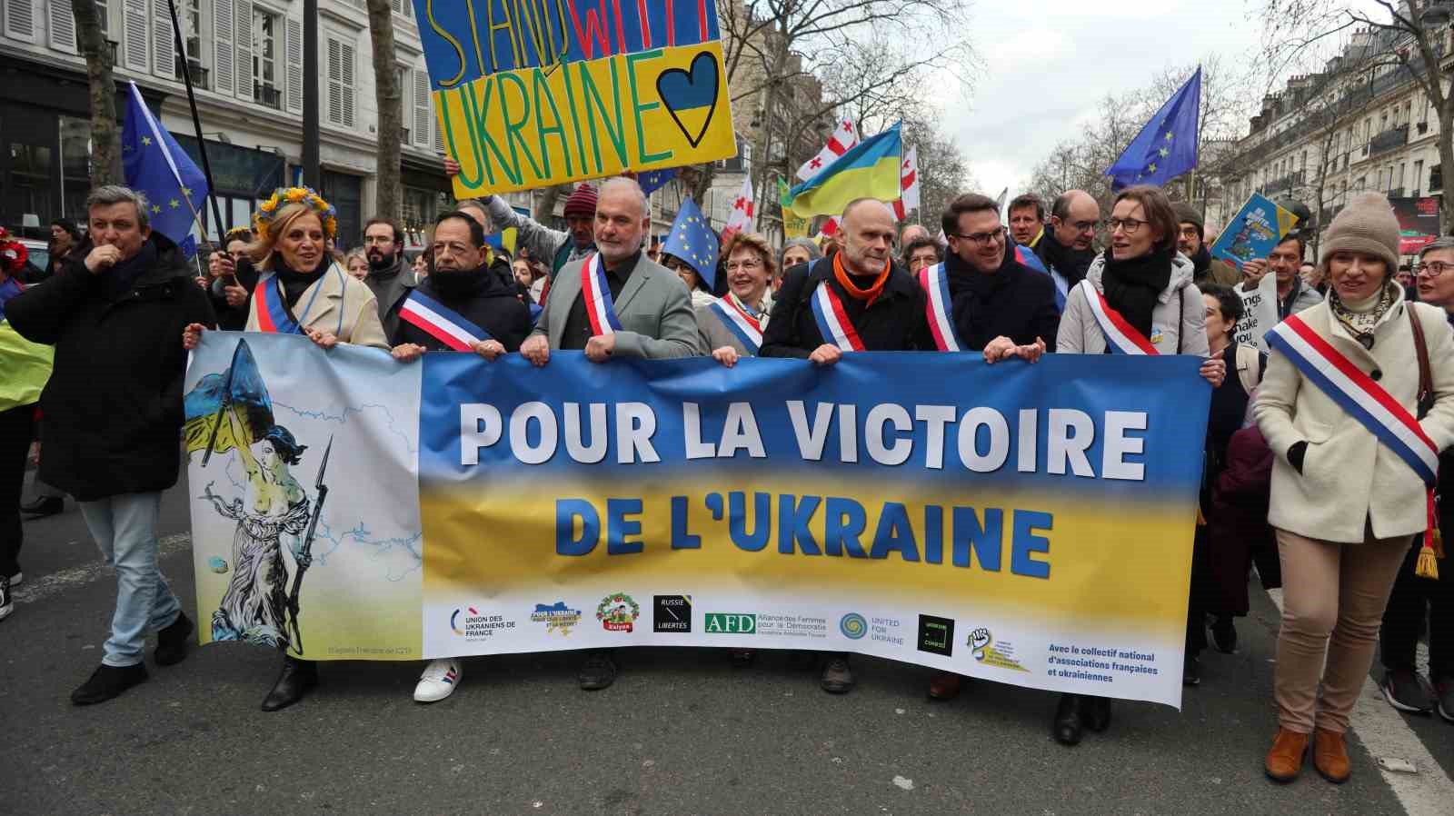 Fransa’da savaşın yıldönümünde Ukrayna’ya destek gösterisi