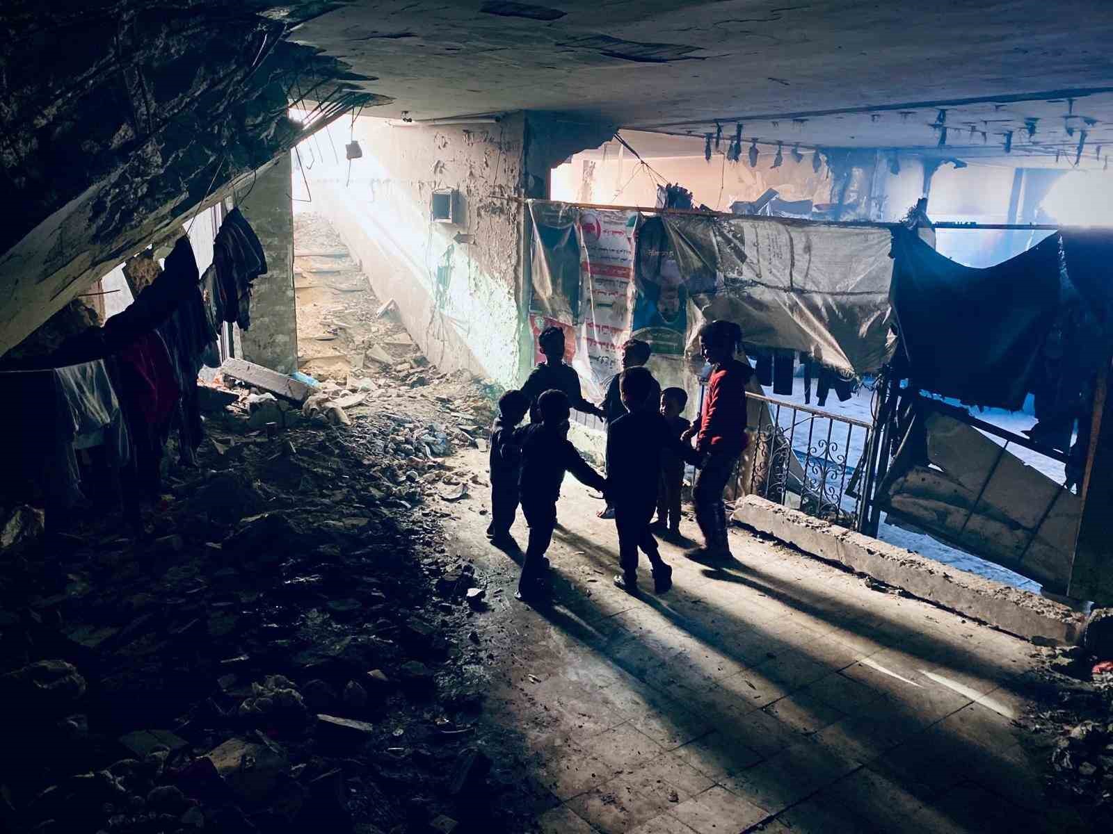 Gidecek yerleri kalmayan Gazzeliler, enkaz halinde binalara sığınarak hayatlarını devam ettirmeye çalışıyor. Refah’ta ailesiyle birlikte sığındığı yıkılmış binada yaşayan 12 yaşındaki Alaa, “Burası çok karanlık ve ışık sadece enkaz kalıntıları arasındaki dar açıklıklardan giriyor” dedi.
