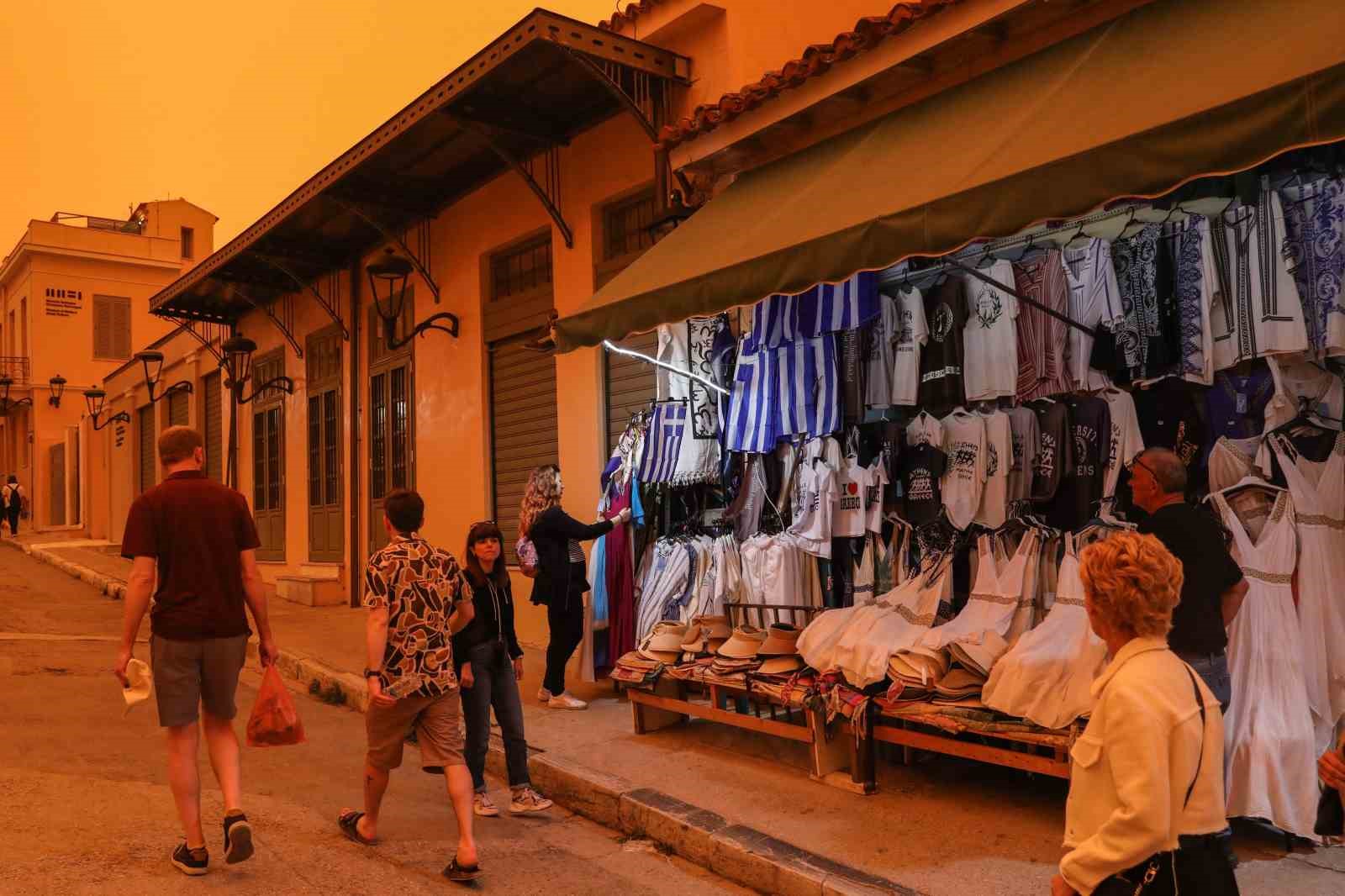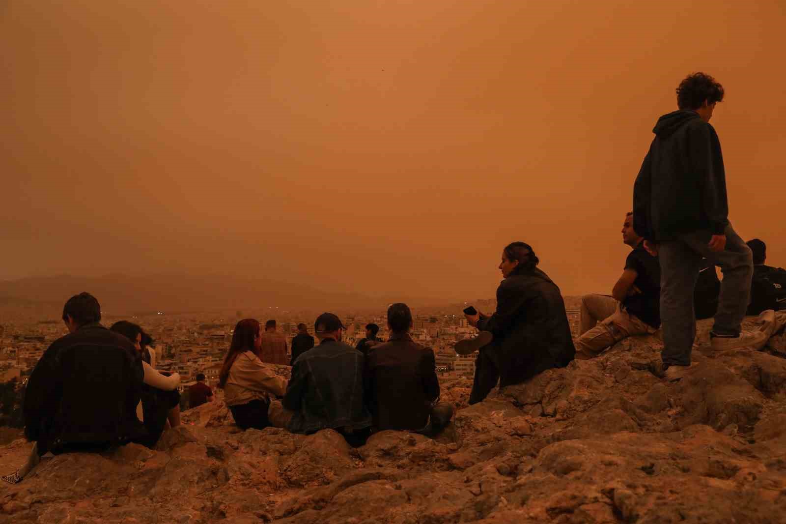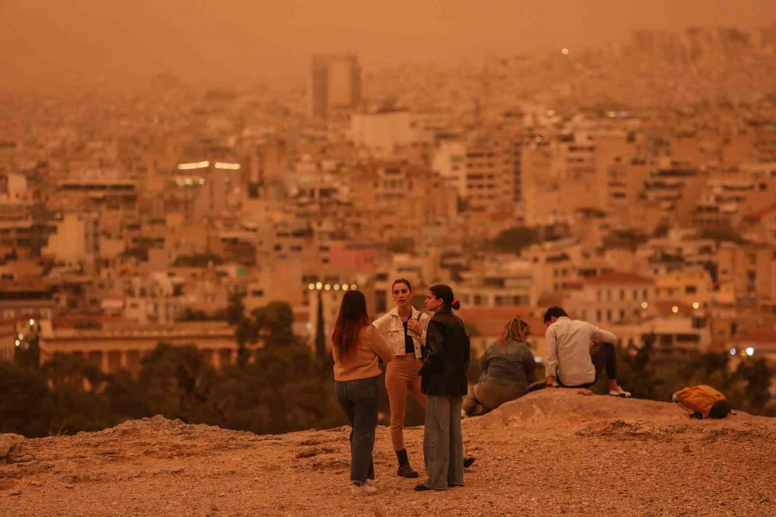Atina’da Sahra’dan gelen çöl tozu gökyüzünü turuncuya boyadı