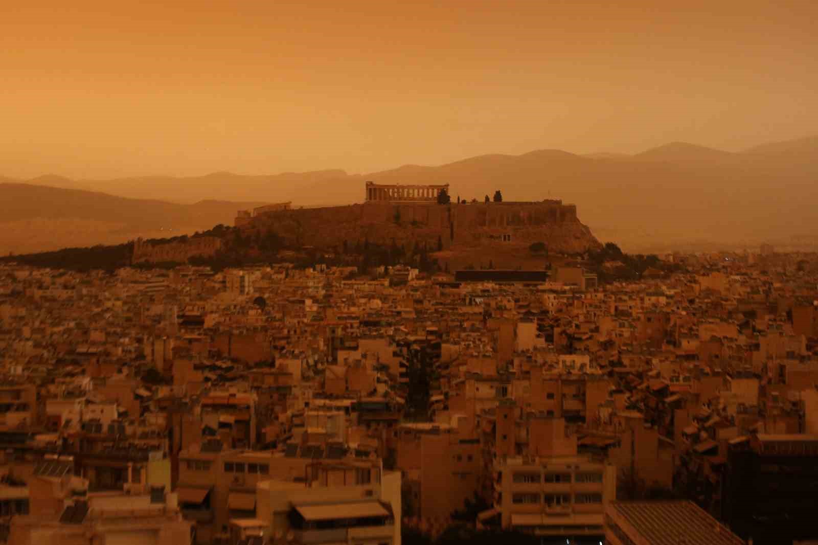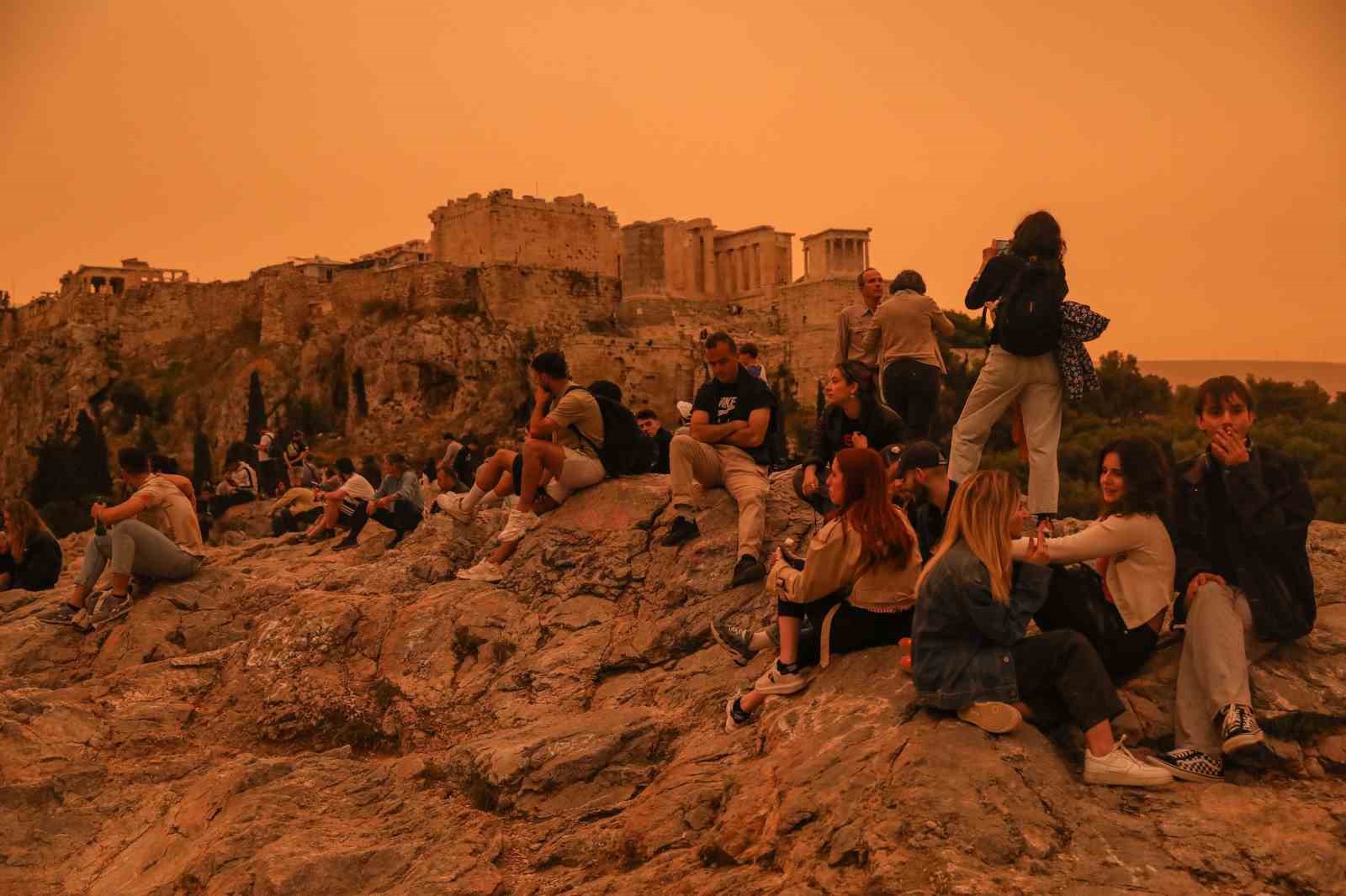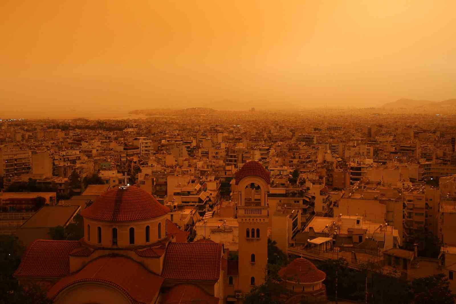 Kuzey Afrika’daki Sahra Çölü’nden rüzgarlarla taşınan toz bulutu dün Yunanistan’ın başkenti Atina’yı etkisi altına aldı. Atina’yı kaplayan çöl tozu nedeniyle gökyüzü turuncuya döndü. Atina’nın simgesi Akropolis de toz bulutlarının arasında kayboldu. Hava kirliliğinin arttığı kentte solunum rahatsızlığı olanların dışarı çıkmaması ve maske takmaları tavsiye edildi. Bugün itibarıyla etkisini kaybeden toz bulutu ülkenin kuzeyindeki Selanik kentine kadar ulaştı.