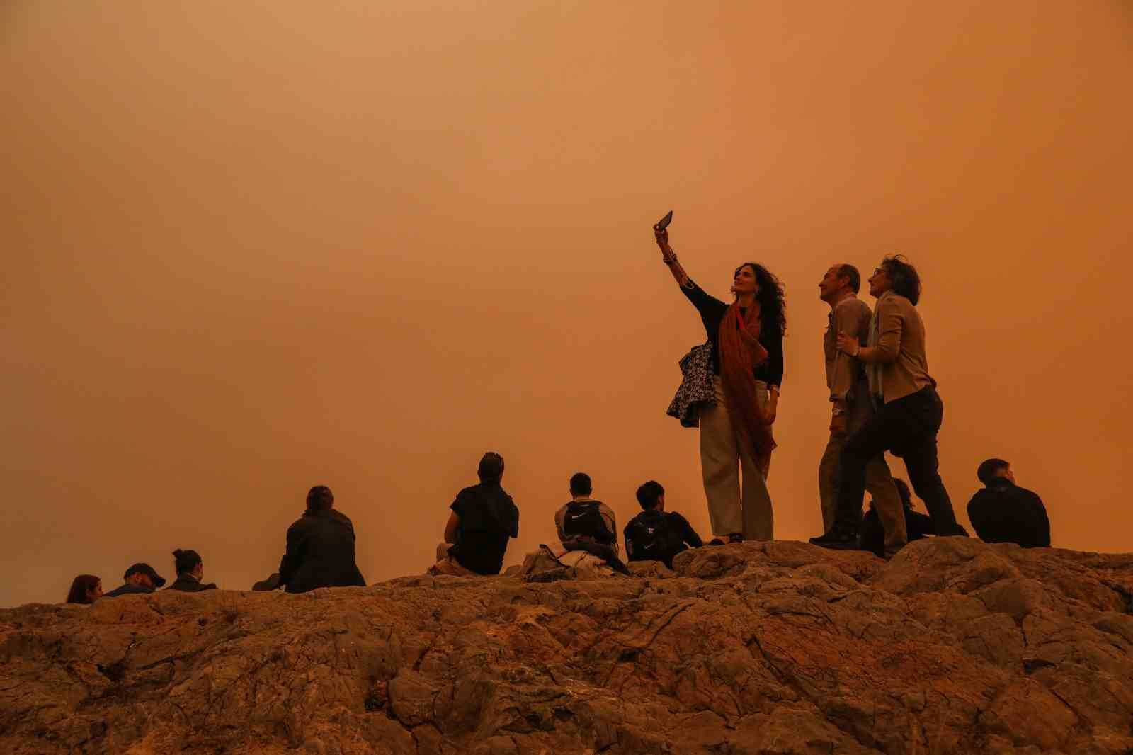 Yunanistan’da Sahra Çölü üzerinden gelen toz bulutu nedeniyle başkent Atina’da gökyüzü turuncuya büründü.