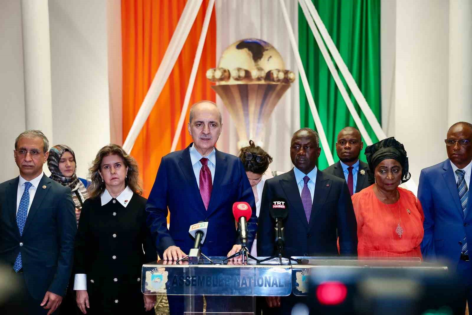 Türkiye Büyük Millet Meclisi (TBMM) Başkanı Numan Kurtulmuş Fildişi Sahili temaslarını sürdürüyor. İslam İşbirliği Parlamenter Asamblesi (İSİPAB) Genel Kurulu’na katılmak üzere geldiği Abidjan şehrinde Fildişi Sahili Ulusal Meclis Başkanı Adama Bictogo ile bir araya geldi. Ulusal Meclis’te törenle karşılanan Kurtulmuş, daha sonra Bictogo ile heyetler arası toplantıya başkanlık etti.
