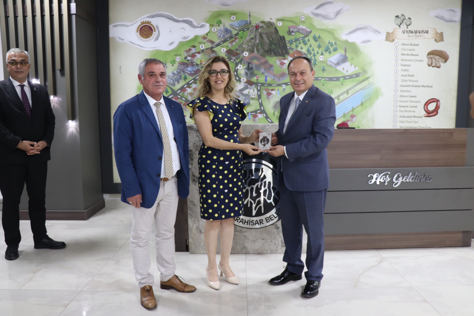 Afyon Eğitim Vakfı (AEV)Yönetim Kurulu Başkanı Hüsnü Serteser, AEV Genel Sekreteri Murat Diker ile birlikte Afyonkarahisar Belediye Başkan Yardımcıları Ömer Yıldız, Eylem Ayar, Erkan Uysal ve Cem Kasapoğlu’na hayırlı olsun ziyaretinde bulundular.