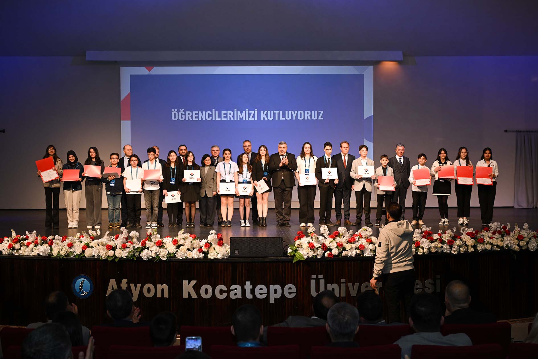 Türkiye Bilimsel ve Teknik Araştırma Kurumu (TÜBİTAK) tarafından 7-9 Nisan 2025 tarihleri arasında Afyon Kocatepe Üniversitesi’nin (AKÜ) destekleriyle gerçekleştirilen 19. TÜBİTAK 2204-B Ortaokul Öğrencileri Araştırma Projeleri Yarışması Konya Bölge Sergisi, Atatürk Kongre Merkezinde düzenlenen ödül töreni ile sona erdi. Ödül törenine; Afyonkarahisar Vali V. Ali Uysal, TÜBİTAK Konya Bölge Koordinatörü Prof. Dr. Mehmet Hacıbeyoğlu, AKÜ Rektör Yardımcısı Prof. Dr. Şuayıp Özdemir, Afyonkarahisar İl Milli Eğitim Müdürü Miraç Sünnetci, AKÜ Eğitim Fakültesi Dekanı Prof. Dr. Nusret Koca, Afyonkarahisar TÜBİTAK Projeleri Sorumlusu Ömer Bozdağ ile birlikte akademik danışmanlar ve öğrenciler katıldı.