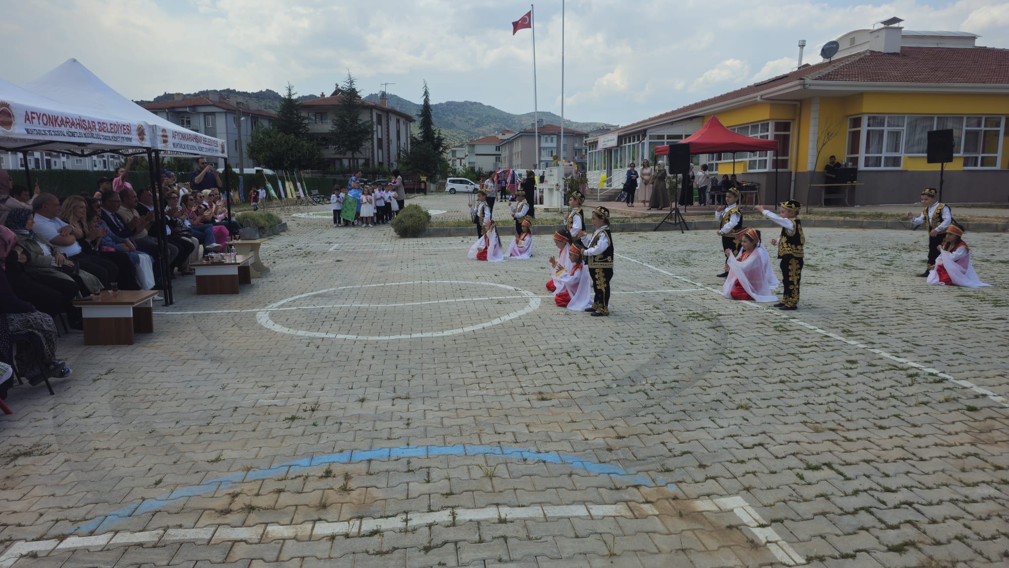 Projeye Afyon Kocatepe Üniversitesi Eğitim Fakültesi Öğretim Görevlisi Doç. Dr. Nezehat Hamiden Karaca destek verdi. Okul bahçesinde gerçekleştirilen açılışa Milli Eğitim Müdür Yardımcısı Fatih Akçil, AKÜ Öğretim Görevlisi Doç. Dr. Nezehat Hamiden Karaca, Okul Müdürü Hilal Karaer, okul personeli, veliler ve öğrenciler katıldı. Açılış programı için minik öğrencilerin geri dönüşüm malzemeleriyle hazırladığı “Geri Dönüşümüm Muhteşem Oldu” sergisi açıldı. Açılış konuşmalarında Okul Müdürü Hilal Karaer, AKÜ Öğretim Görevlisi Doç. Dr. Nezehat Hamiden Karaca ve Milli Eğitim Müdür Yardımcısı Fatih Akçil, açık hava sınıfının hayırlı olması temennisinde bulundu. Konuşmalardan sonra okul öğrencileri halk oyunları gösterisi yaptı. Öğrencilerin çevre ve doğa ile ilgili yaptığı afişler de sergilendi. Açılış kurdelesinin kesilmesinden sonra açık hava sınıfı ve eğitim alanı gezildi. Eğitim alanındaki uygulama noktaları ise büyük beğeni topladı. >>>Mustafa Emre ŞAHİN