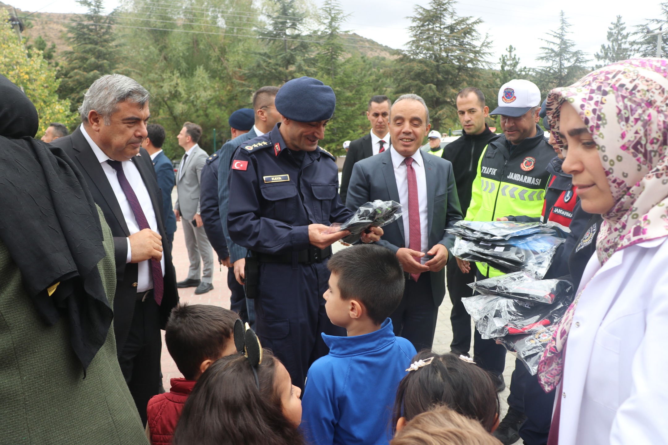 Protokol üyeleri, çocuklara üniformalarını tek tek teslim etti. Yeni üniformalarını giyen öğrenciler, polis ve jandarma abi-ablalarıyla bol bol hatıra fotoğrafı çektirerek unutulmaz bir gün yaşadı.
