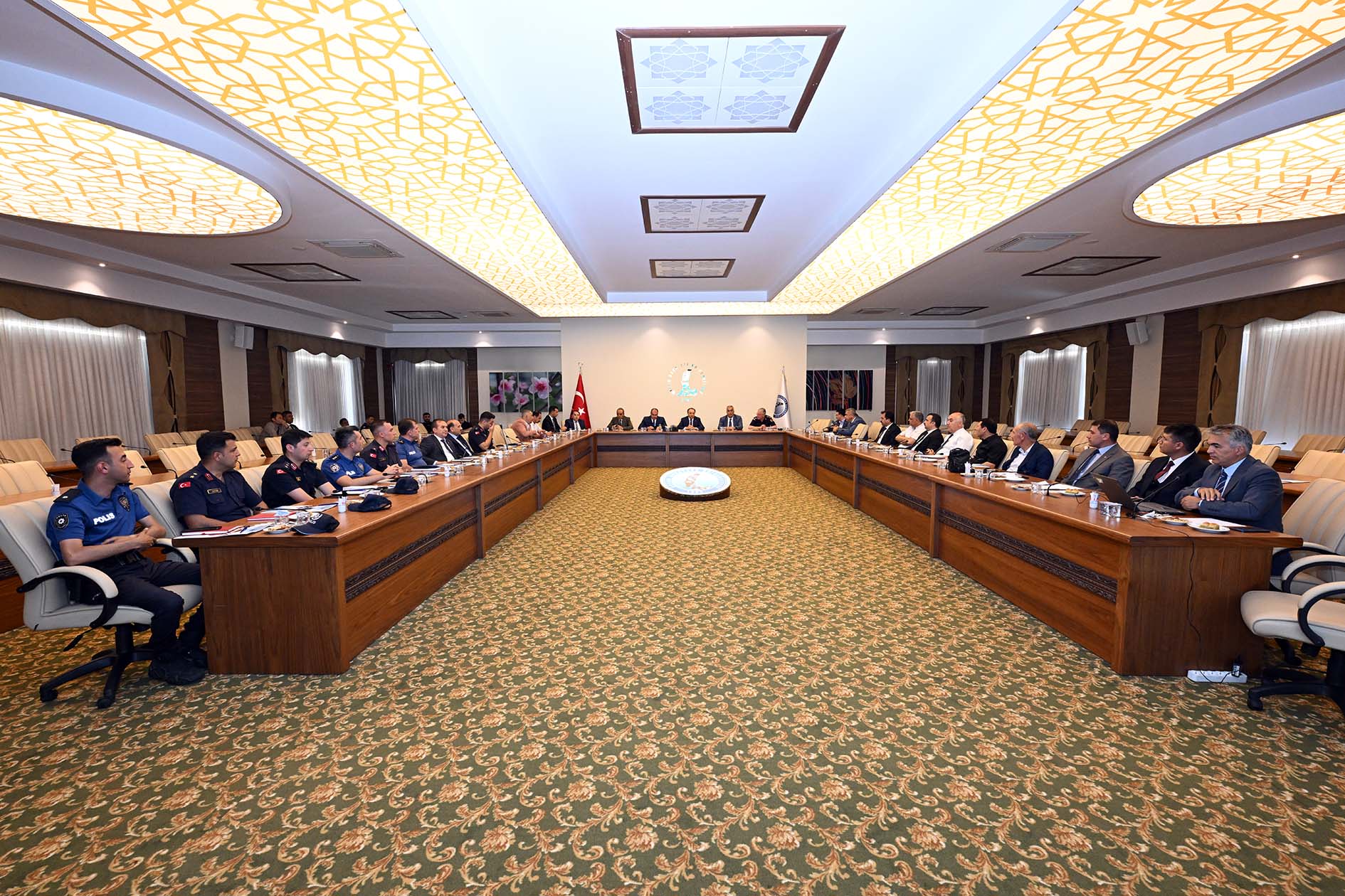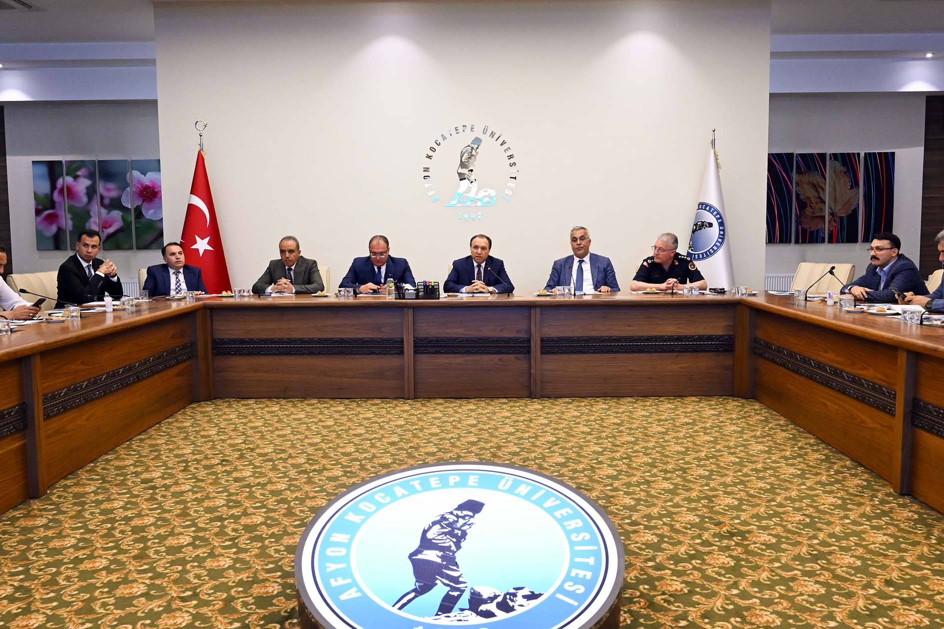 AKÜ Senato Salonunda gerçekleştirilen toplantıya AKÜ Rektörü Prof. Dr. Mehmet Karakaş ile birlikte Afyonkarahisar Vali Yardımcısı İhsan Ayrancı, Afyonkarahisar Belediye Başkan Yardımcısı Ömer Yıldız, Afyonkarahisar İl Emniyet Müdürü Ahmet Birtan Erol, Afyonkarahisar İl Jandarma Komutanı Albay Tolga Yağan, Afyonkarahisar İl Milli Eğitim Müdürü Miraç Sünnetci, Sandıklı Kaymakamı Emrah Arslan, Emirdağ Kaymakamı Yasin Akgül, Bolvadin Kaymakamı Ali Arıkan, Dinar Kaymakamı Kemal Duru, Sandıklı Belediye Başkanı Adnan Öztaş, Emirdağ Belediye Başkanı Serkan Koyuncu, Bolvadin Belediye Başkan Yardımcısı Sadi Bayram, Dinar Belediye Başkanı Veysel Topçu, İl Nüfus ve Vatandaşlık Müdürü Erkan Tanyeri, ÖSYM İl Sınav Koordinatörü Prof. Dr. Mustafa Kemal Yıldız ile birlikte kamu kurum ve kuruluşlarının temsilcileri katıldı.