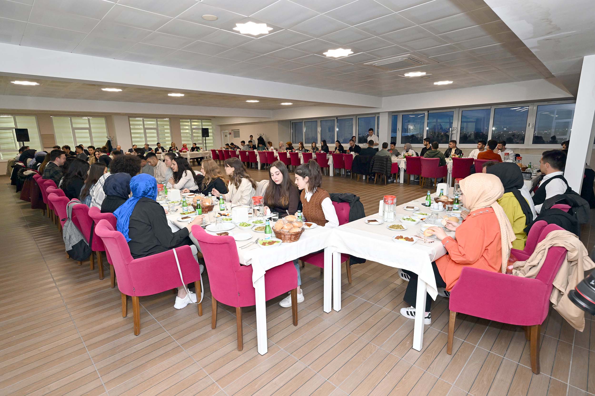 Merkezi Yemekhanede gerçekleştirilen iftar programına Rektör Prof. Dr. Karakaş’ın yanı sıra, Rektör Yardımcısı Prof. Dr. Murat Peker, Sağlık, Kültür ve Spor Daire Başkanı Gürbüz Bıdık, AKÜ personeli ve öğrenci kulüp ve toplulukların temsilcileri katıldı. Programda açıklama yapan AKÜ Rektörü Prof. Dr. Mehmet Karakaş, AKÜ’nün en etkili öğrencileri ile bir araya geldiklerini belirtti. Karakaş, “Çünkü 35 bin öğrencimiz var. Bu 35 bin öğrenci içerisinde kulüplerde, topluluklarda ve benzeri oluşumlarda; ön plana çıkan, faaliyetlere katılan, bu faaliyetlere liderlik yapan dolayısıyla da bu faaliyetlerin içerisinde fiili olarak bulunan öğrencilerimizsiniz. Liderlik özellikleriniz ön plana çıktığı için buralardasınız. Yaptığınız işler bunu gösteriyor” diye konuştu. Üniversite eğitiminin sadece öğrenme yaşantısından ibaret olmadığını kaydeden Karakaş, “Üniversite hayatı, sosyal ve kültürel yaşantı ile birlikte tamamlanan bir süreçtir. Üniversite, bir sosyalleşme sürecidir. Üniversite hayatının 3 ayağı vardır; birincisi, temel olanı öğrenme yaşantısıdır, diğerleri ise sosyal ve kültürel yaşantıdır. Üniversite kimliği bu 3 ayakla tamamlanır. Siz de bu 3 ayağın 3’ünde de yer alıyorsunuz. Büyük ihtimalle derslerinizde de başarılısınızdır. Çünkü sosyal zeka aynı zamanda akademik zekayı da güçlendiren bir özelliğe sahip. Siz sosyal zekası öne çıkan arkadaşlarımızsınız. Dolayısıyla hepinizi tebrik ediyorum” ifadelerini kullandı.