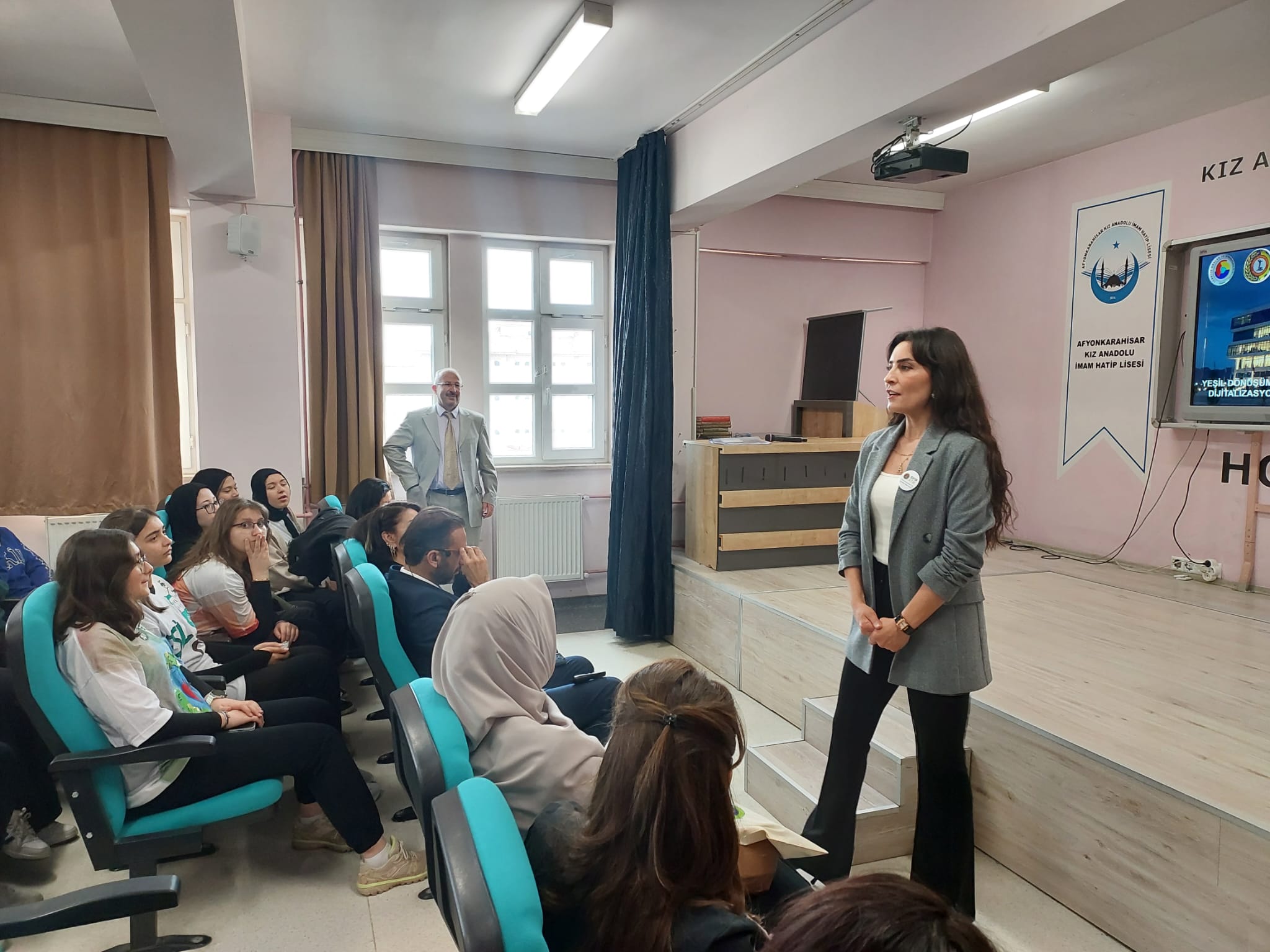 TOBB Afyonkarahisar Kadın Girişimciler Kurulu, Afyonkarahisar Kız Anadolu İmam Hatip Lisesi Fen ve Sosyal Bilimler Proje Okulu’nda öğrencilerle bir araya geldi.