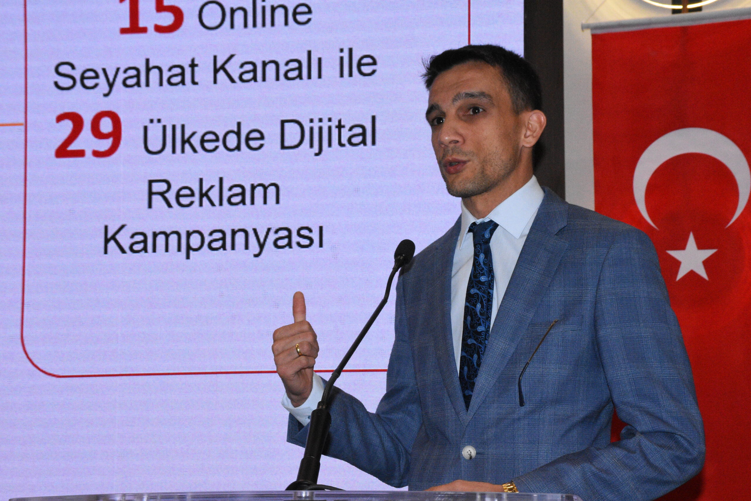 Kültür ve Turizm Bakanlığı Türkiye Turizm Tanıtım ve Geliştirme Ajansı tarafından termal bir otelde yapılan 6. İTGP toplantısında “Go Türkiye Dijital Platformu” ile “Afyonkarahisar Turizmi” hakkında sunum yapıldı. İl Kültür ve Turizm Müdürü Yusuf Altın, toplantıda yaptığı konuşmada, Afyonkarahisar’ın tanıtımıyla ilgili turizm faaliyetlerini ve uygulanabilecek projeleri anlattı. Afyonkarahisar’a gelen ziyaretçi sayıları hakkında bilgiler veren Altın, “Kültür ve Turizm Bakanlığı verilerinde bu yılın ilk dört ayında Afyonkarahisar’a 242 bin ziyaretçi gelmiştir. Afyonkarahisar’ı en çok ziyaret eden ülke Güney Kore’dir. Bunun dışında Almanya, Kuzey Kıbrıs Türk Cumhuriyeti, Romanya ve Rusya’dan turistler şehrimize ilgi göstermektedir.” ifadesini kullandı. Altın, Afyonkarahisar’da turizm alanında yapılacak yeni projeler hakkında bilgi verdi. Afyonkarahisar Vali Yardımcısı Vekili Bedir Deveci de Afyonkarahisar’da turizmin kalkınabilmesi için kurumların birlik ve beraberlik içerisinde hareket etmesi ve somut adımların atılması gerektiğini ifade etti. Toplantıya, Afyonkarahisar Belediye Başkanı Yardımcısı Eylem Ayar, TURSAB Dumlupınar Bölge Temsilcisi Bilal Şenel, kurum temsilcileri, sivil toplum kuruluşu temsilcileri ve otel genel müdürleri katıldı. >>>AA