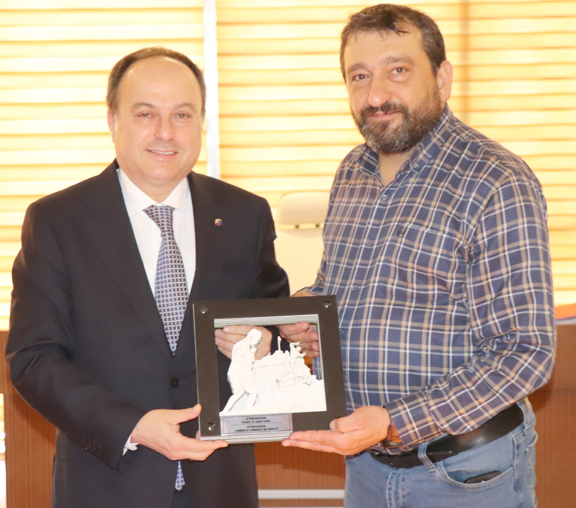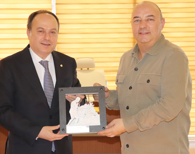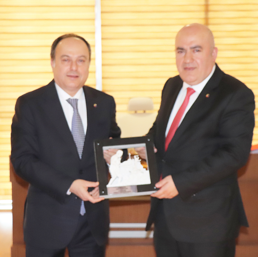 Medya İşçileri Sendikası Genel Başkanı Sezai Ballı, Genel Başkan Yardımcıları Cemal Sonsay ve Sefa Özdemir, Bilecik Ticaret ve Sanayi Odası Yönetim Kurulu Başkanı ve Basın İlan Kurulu Yönetim Kurulu Üyesi Mehmet Ergün ile Basın İlan Kurulu Yönetim Kurulu Üyesi Tahir Gülebak, Afyonkarahisar Ticaret ve Sanayi Odası Yönetim Kurulu Başkanı Hüsnü Serteser’i ziyaret etti. Ziyarette Afyonkarahisar ekonomisi hakkında istişare edildi, basın-yayın sektöründeki son gelişmeler de ele alındı. ATSO Yönetim Kurulu Başkanı Hüsnü Serteser, heyete ATSO’nun faaliyetleri ve dünyadaki yeşil binalar arasında birinci olan hizmet binası hakkında bilgi verdi. Ziyaret hediye takdiminin ardından sona erdi