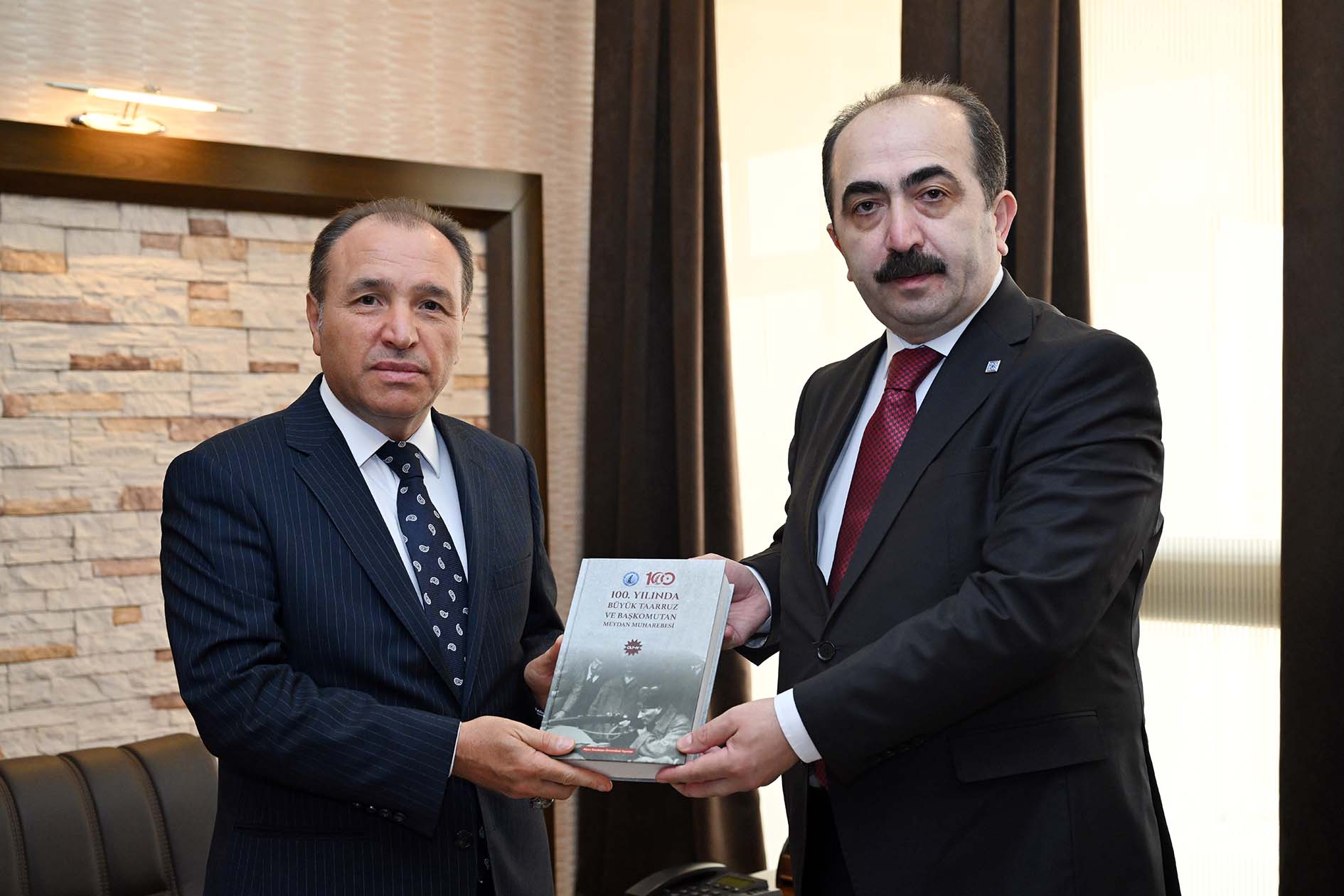 AKÜ Rektörü Prof. Dr. Mehmet Karakaş ise Cumhuriyetimizin ikinci yüzyılının başında cumhuriyetin köklü kuruluşlarından Türk Tarih Kurumunun nitelikli yayınlarını kütüphanemizde bulundurup sergilemekten ve akademisyen ile öğrencilerin faydasına sunmaktan mutlu olduklarını dile getirdi. Konuşmaların ardından Türk Tarih Kurumu Yüzüncü Yıl Kitaplığı kesilen kurdela ile hizmete girdi. Etkinlik hatıra fotoğrafı çektirilmesi ile son buldu. Türk Tarih Kurumu Başkanı Prof. Dr. Yüksel Özgen, AKÜ Rektörü Prof. Dr. Mehmet Karakaş’ı makamında ziyaret ederek şeref defterini imzaladı. Ziyarette Özgen’e AKÜ Rektörü Prof. Dr. Mehmet Karakaş tarafından AKÜ yayınlarından olan ve 4 ciltten oluşan “100. Yılında Büyük Taarruz ve Başkomutan Meydan Muharebesi” kitabını hediye etti.>>> Şahan Kartal