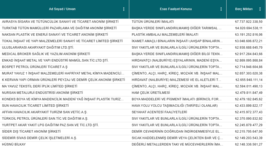 Vergi borcunda ilk sıraları çeken şirketler ve sahipleri dudak uçuklattı: