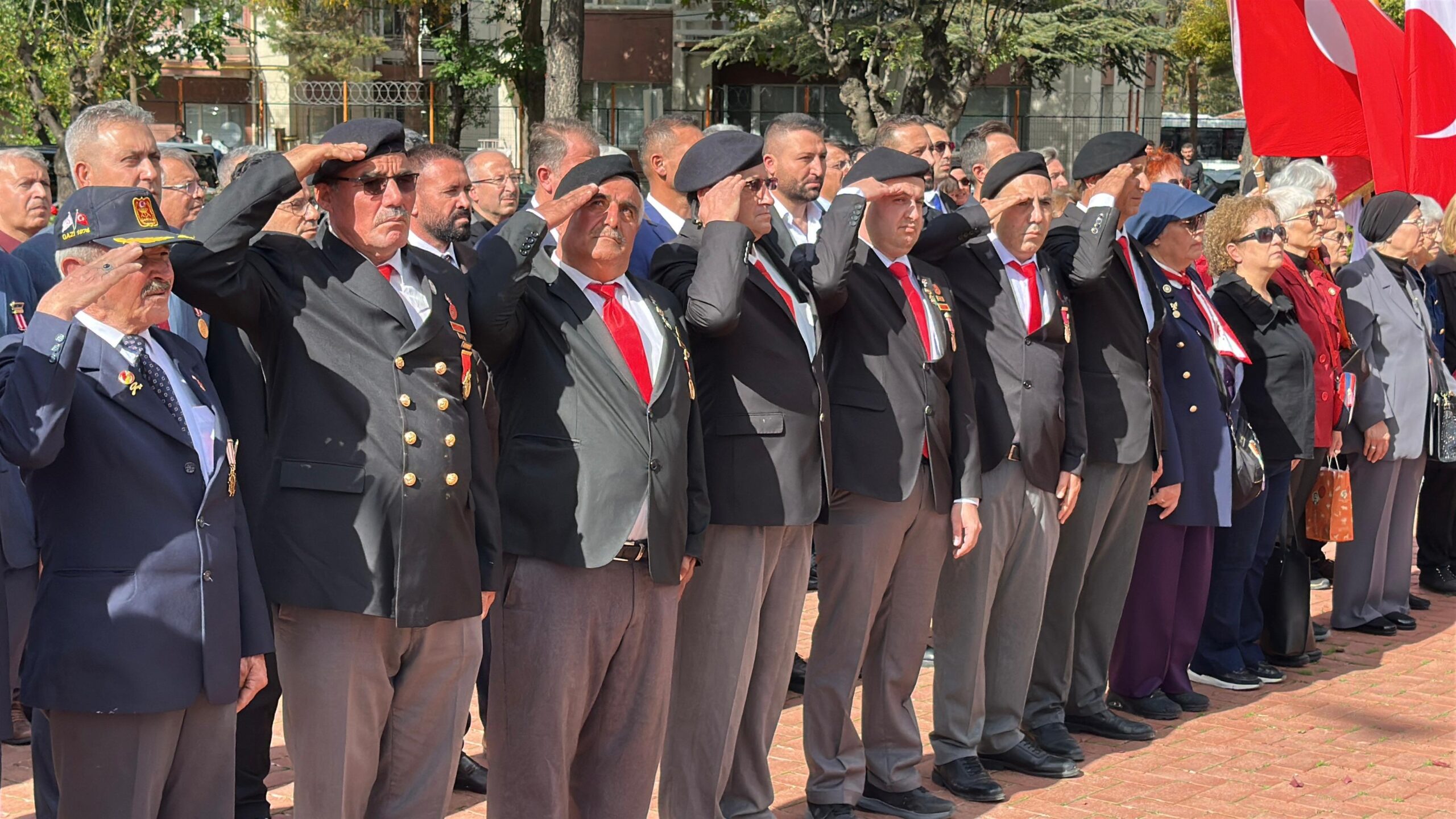 Özel Haber / Şerafettin Kazak – Tören, Afyonkarahisar Valiliği, Garnizon Komutanlığı ve Afyonkarahisar Belediye Başkanlığı tarafından Atatürk Anıtı’na çelenklerin sunulmasıyla başladı. Ardından, katılımcılar tarafından saygı duruşunda bulunuldu ve İstiklâl Marşı okunarak Türk bayrağı göndere çekildi.