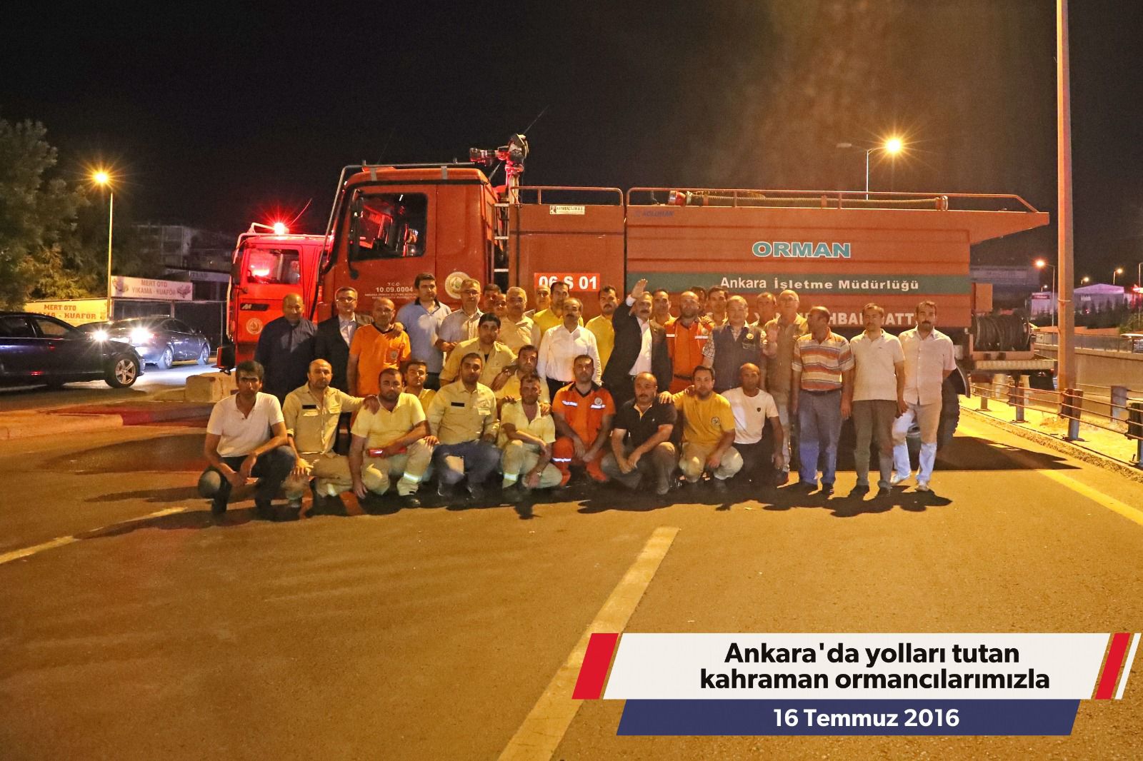 Akşama doğru Külliye civarındaki vatandaşları ve özel harekât polislerini ziyaret ettim. Hatta orada bir televizyona beyanat verdim. Oradan Mamak’a geçerek OGM personeli ile görüşüp, araç ve arazöz ile yolların kesildiği durumu gördük. Gerçekten OGM bütün yolları kapatmıştı. Orman Genel Müdürlüğü’nün büyük devasa araçları ve arazözler ile yolların tamamını kesmişler. Geçitlerine imkân vermemişler. Hatta ben bu araçların yanına varınca oradaki bütün personelimiz yanımıza geldi. Şoförler, diğer elemanlar, genel müdür yardımcıları, daire başkanları onlarla birlikte resim çektirdik.