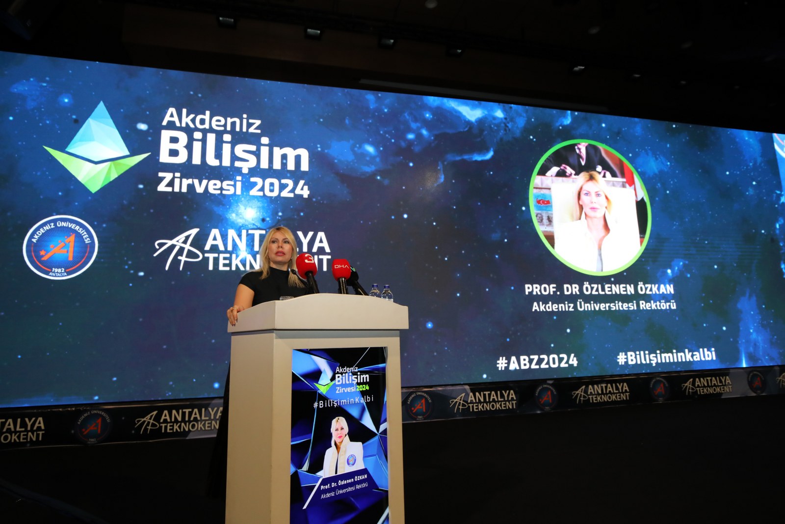 Konuşmasında yapay zekâyı kullanarak bir örnek sunan Akdeniz Üniversitesi Rektörü Prof. Dr. Özlenen Özkan, “Teknoloji, bir araçtan çok daha fazlası; o, toplumlarımızı şekillendiren bir kuvvet, bir dönüştürücü. Yapay zekâ, inovasyon ve bilişim çözümleriyle, geçmişte hayal bile edemediğimiz sorunlara çözümler bulabileceğimiz bir dünyaya hızla ilerliyoruz. Bugün burada, yalnızca teknolojiyi değil, sınırlarımızı ve potansiyelimizi de keşfetmek için toplandık. İş birliği ve motivasyonla dolu bir gün geçireceğimizden eminim. Dinlediğiniz konuşmam, tamamen yapay zeka tarafından yazıldı. Bilişim Zirvesi’nin davetiyesini sisteme yükledim ve ondan bir açılış konuşması hazırlamasını istedim. Ortaya çıkan metin buydu. Düşünün, yalnızca bir davetiye bilgisiyle böyle bir giriş oluşturabilen bir teknolojiyle karşı karşıyayız. Bu, sadece birkaç dakikalık bir çalışmanın ürünü. Ve daha da ilginç olanı, buradaki hiç kimse ben bunu söylemesem bunun yapay zeka tarafından yazıldığını fark etmeyecekti. Bu gerçek, hepimize bir soru yöneltiyor: Sınırlarımız nerede? İnsan unsuru, bu teknolojinin neresinde duracak? Eğer kişisel bir açılış konuşmasını bile bu kadar doğal bir şekilde yazabiliyorsa, yaratıcılık ve özgünlük gibi insana dair özelliklerimiz nasıl tanımlanacak?” dedi.