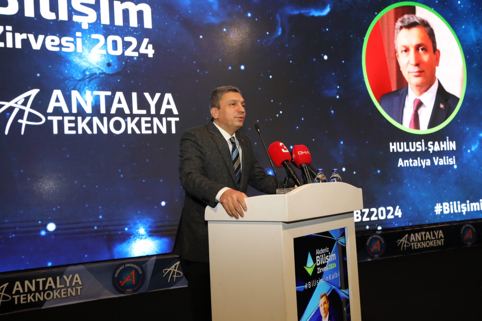 Antalya Valisi Hulusi Şahin, “İnsanoğlu yeryüzünde yaklaşık üç yüz bin yıldır var. Üç yüz bin yılın ilk herhalde iki yüz doksan yedi bin yılı birbirinin hemen hemen aynısı. Tarım devrimi ile üç bin yıl farklı oluyor. Endüstri devrimiyle son üç yüzyıl farklı. Dijital devrimiyle şimdi son 30 yıl farklı. Şimdi son üç yılda teknolojiler değişiyor ve eskiyor. Baş döndürücü bir hızla dünya değişiyor. Hele bizim neslimiz bunu gözüyle de görüyor, yaşıyor içindeyiz. Ben üniversite öğrencisiydim, ilk bilgisayar gördüğümde. Evimize ilk televizyonun geldiğini hatırlıyorum. Bilgi baş döndürücü bir hızla artıyor. Ve ekleniyor birbirinin üzerine. Eskiden de bilgi çok değerliydi. Fakat ulaşmak zordu. Artık dünya o kadar değişti ki bilgiye ulaşmak çok kolay, gizli bilgi de çok az. Yeni zorluklar bu kadar bilgiyi işlemekten geçer. İşte yeni dünya bunun üzerinde şekillenecek. Bilgiyi işlemek işte burada bu yapay zekâ denen ve bunun ne kadar büyük bir devrim olduğunu sonradan anlayacağımız günleri yaşıyoruz.” dedi.