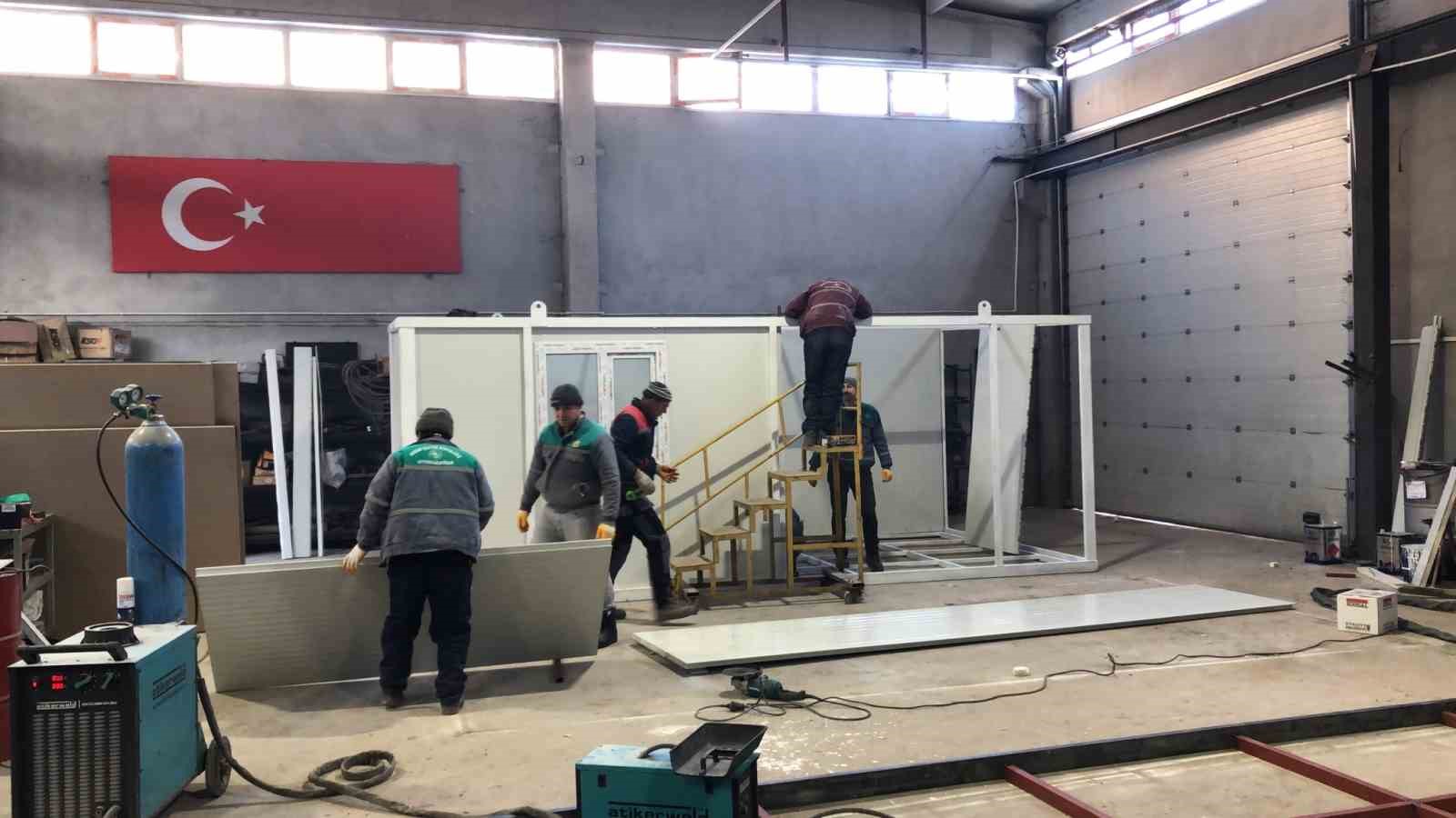 Deprem bölgesindeki afetzedelerin barınma ihtiyaçlarını karşılamak üzere Eskişehir Orman Bölge Müdürlüğü’ne bağlı Afyonkarahisar İşletme Müdürlüğünün Çakırköy’ de bulunan tamir atölyesinde konteyner üretimine başlandı.