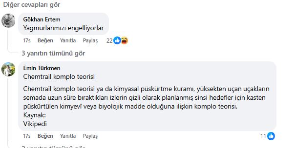 Bazı kullanıcılar bu durumu “küresel güçler yağmuru engelliyor” şeklindeki komplo teorileriyle yorumlarken, bazı vatandaşlar ise bu tür izlerin normal uçak izleri olduğunu savundu.