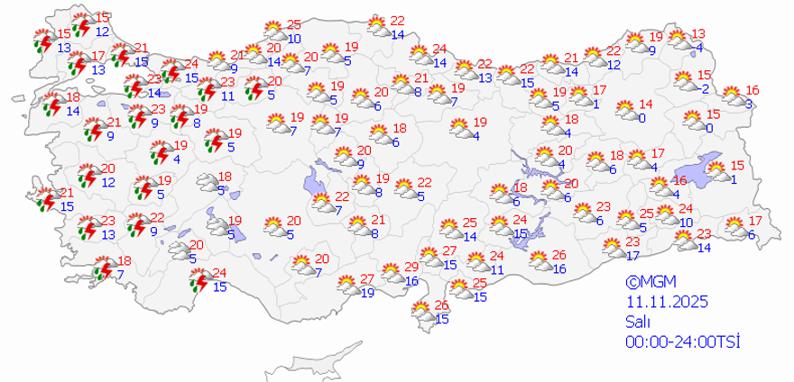Bazı illerde bugün beklenen hava sıcaklıkları şöyle: