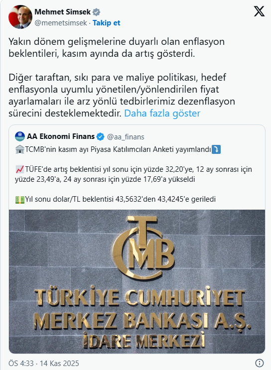 Sosyal medya hesabından açıklama yapan Bakan Şimşek şunları kaydetti: